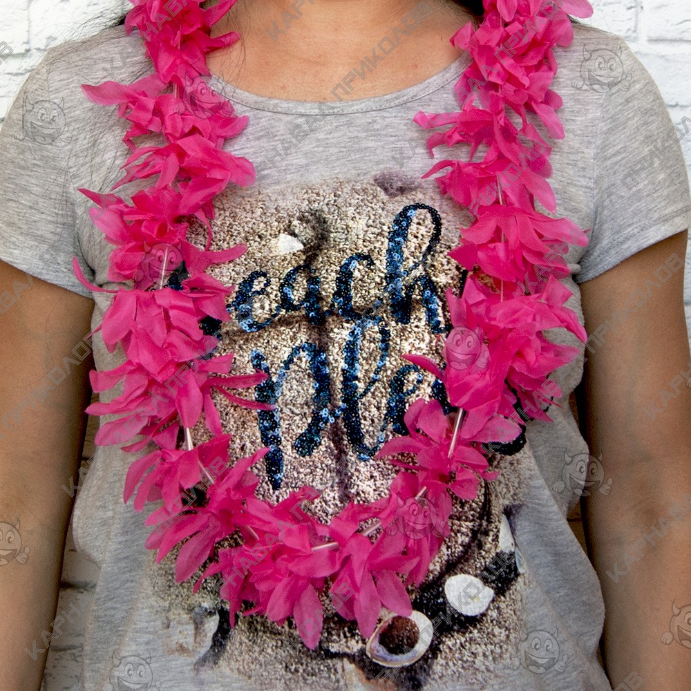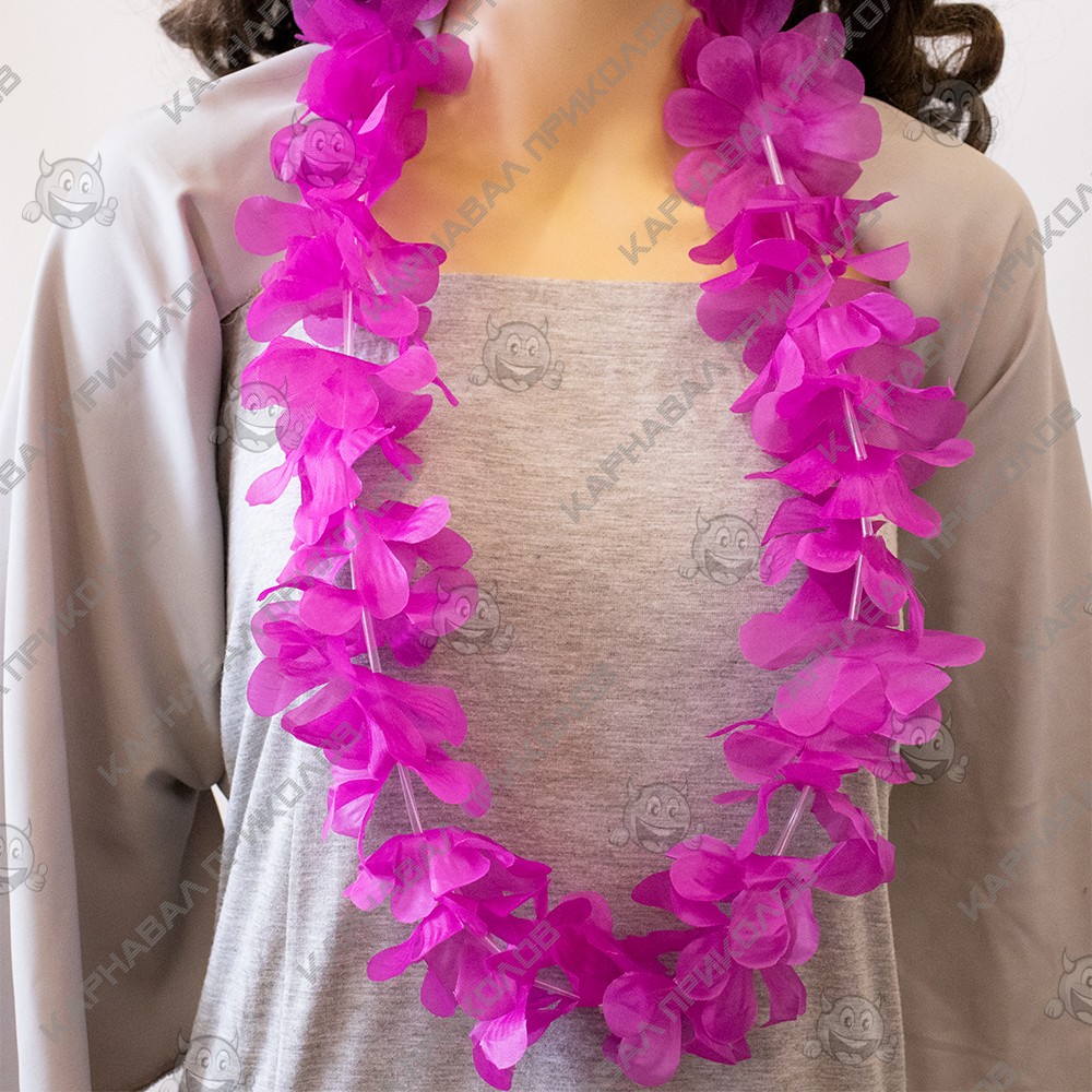 Без гавайських гірлянд з квітів весела тематична вечірка у гавайському стилі не обійдеться! Гавайські леї Гібіскус (фуксія) надягають на дорогих і високоповажних гостей, але на маскараді пишні намисто лише підкреслять образ витонченої островитянки. Плавні рухи і танці, що зачаровують, у гавайських ритмах запам'ятаються гостям завдяки шикарним гірляндам на шиї. Вечірка перестає бути сірою та нудною, коли в її русло вливаються яскраво – барвисті Гаваї! Щоб гості відчули себе в потоці свята, інтернет-магазин Карнавал Приколів рекомендує купити кожному гостю гавайський атрибут як оригінальний подарунок – тоді ніхто не забуде про казково проведений час!