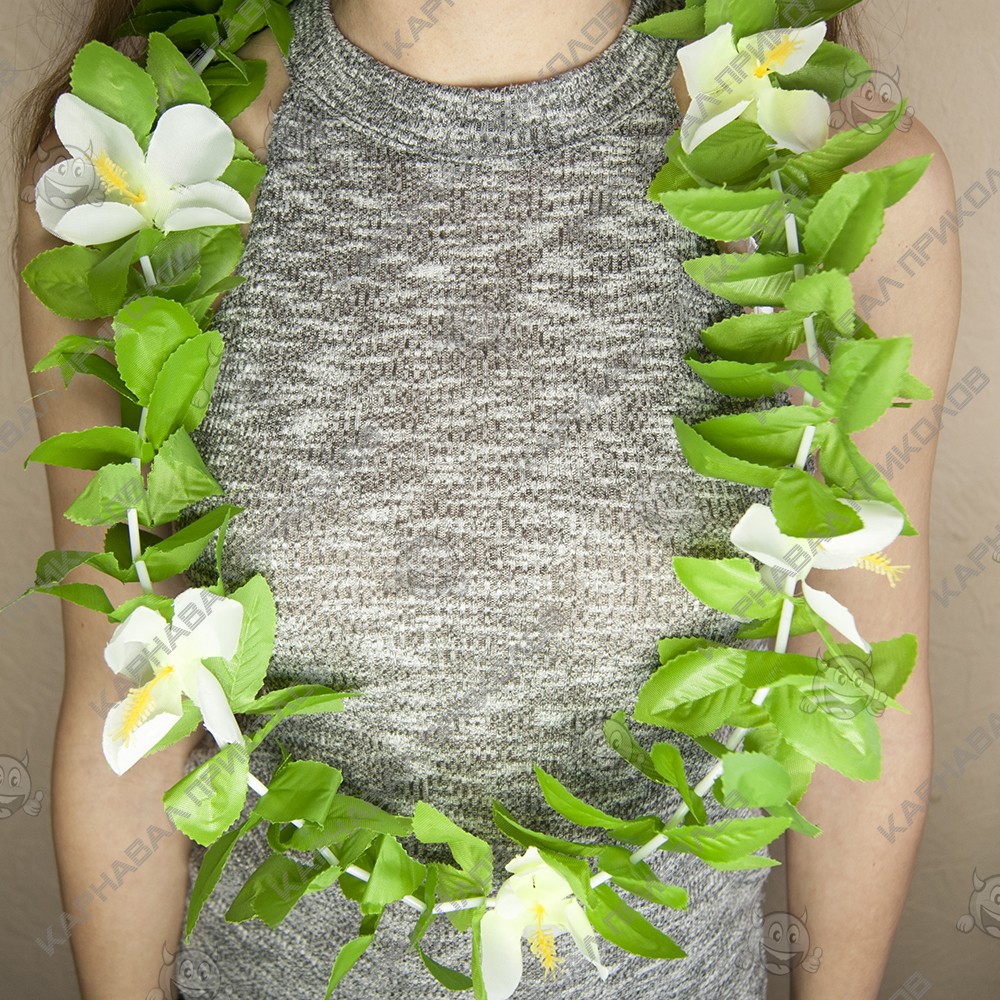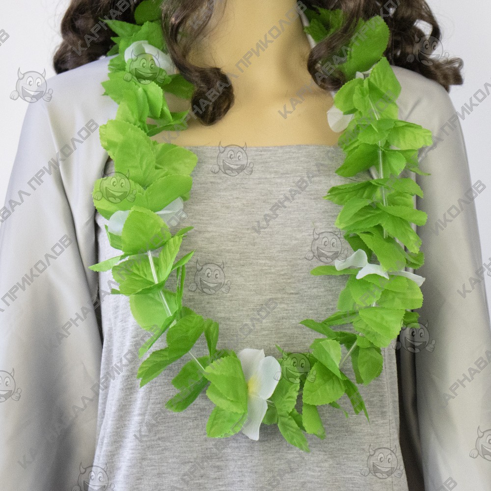 Без гавайських гірлянд з квітів весела тематична вечірка у гавайському стилі не обійдеться! Гавайські леї Німфа (зелені з білим) одягають на дорогих і високоповажних гостей, але на маскараді пишні намисто лише підкреслять образ витонченої островитянки. Плавні рухи і танці, що зачаровують, у гавайських ритмах запам'ятаються гостям завдяки шикарним гірляндам на шиї. Вечірка перестає бути сірою та нудною, коли в її русло вливаються яскраво – барвисті Гаваї! Щоб гості відчули себе в потоці свята, інтернет-магазин Карнавал Приколів рекомендує купити кожному гостю гавайський атрибут як оригінальний подарунок – тоді ніхто не забуде про казково проведений час!