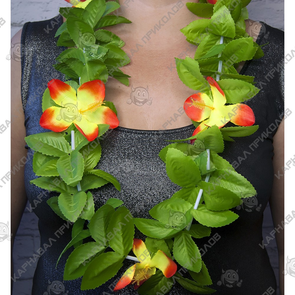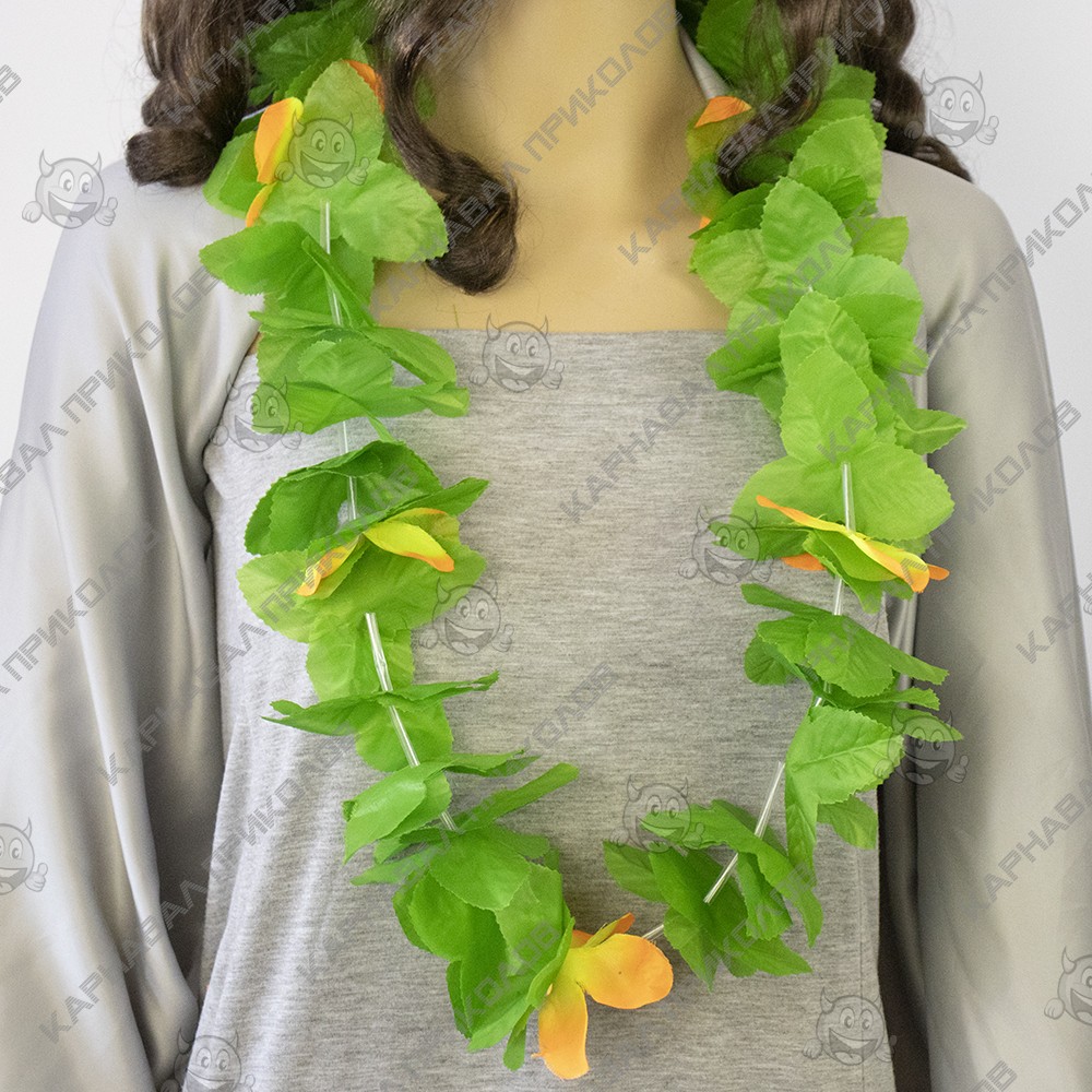 Без гавайських гірлянд з квітів весела тематична вечірка у гавайському стилі не обійдеться! Гавайські леї Німфа (зелені з помаранчевим) одягають на дорогих і високоповажних гостей, але на маскараді пишні намисто лише підкреслять образ витонченої островитянки. Плавні рухи і танці, що зачаровують, у гавайських ритмах запам'ятаються гостям завдяки шикарним гірляндам на шиї. Вечірка перестає бути сірою та нудною, коли в її русло вливаються яскраво – барвисті Гаваї! Щоб гості відчули себе в потоці свята, інтернет-магазин Карнавал Приколів рекомендує купити кожному гостю гавайський атрибут як оригінальний подарунок – тоді ніхто не забуде про казково проведений час!