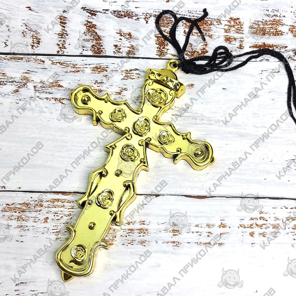 Хрест священика (золотий) – невід'ємний аксесуар для карнавального костюма священика чи ченця. Карнавальний хрест священика виготовлений з пластику, благородного золотого кольору. у комплекті постачається мотузка. Ще більше карнавальних аксесуарів у групі Деталі костюмів. Наш магазин пропонує товари оптом та для дропшиперів, ви можете оформити замовлення на сайті Карнавал Приколів та задати будь-які запитання, що цікавлять менеджер, замовивши дзвінок на нашому сайті