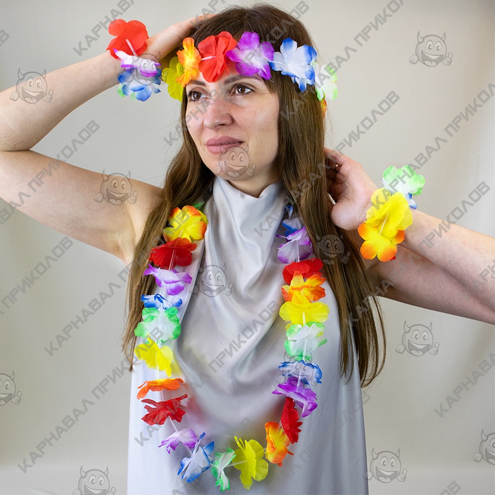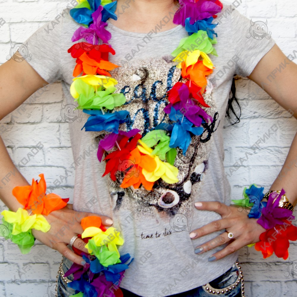 Гавайський набір (леї, браслети, вінок) надягають на дорогих та високоповажних гостей, але на маскараді пишні намисто з браслетами лише підкреслять образ витонченої островитянки. Плавні рухи і танці, що зачаровують, у гавайських ритмах запам'ятаються гостям завдяки шикарним гірляндам на шиї. Вечірка перестає бути сірою та нудною, коли в її русло вливаються яскраво – барвисті Гаваї! Щоб гості відчули себе в потоці свята, інтернет-магазин Карнавал Приколів рекомендує купити кожному гостю гавайський атрибут як оригінальний подарунок – тоді ніхто не забуде про казково проведений час!