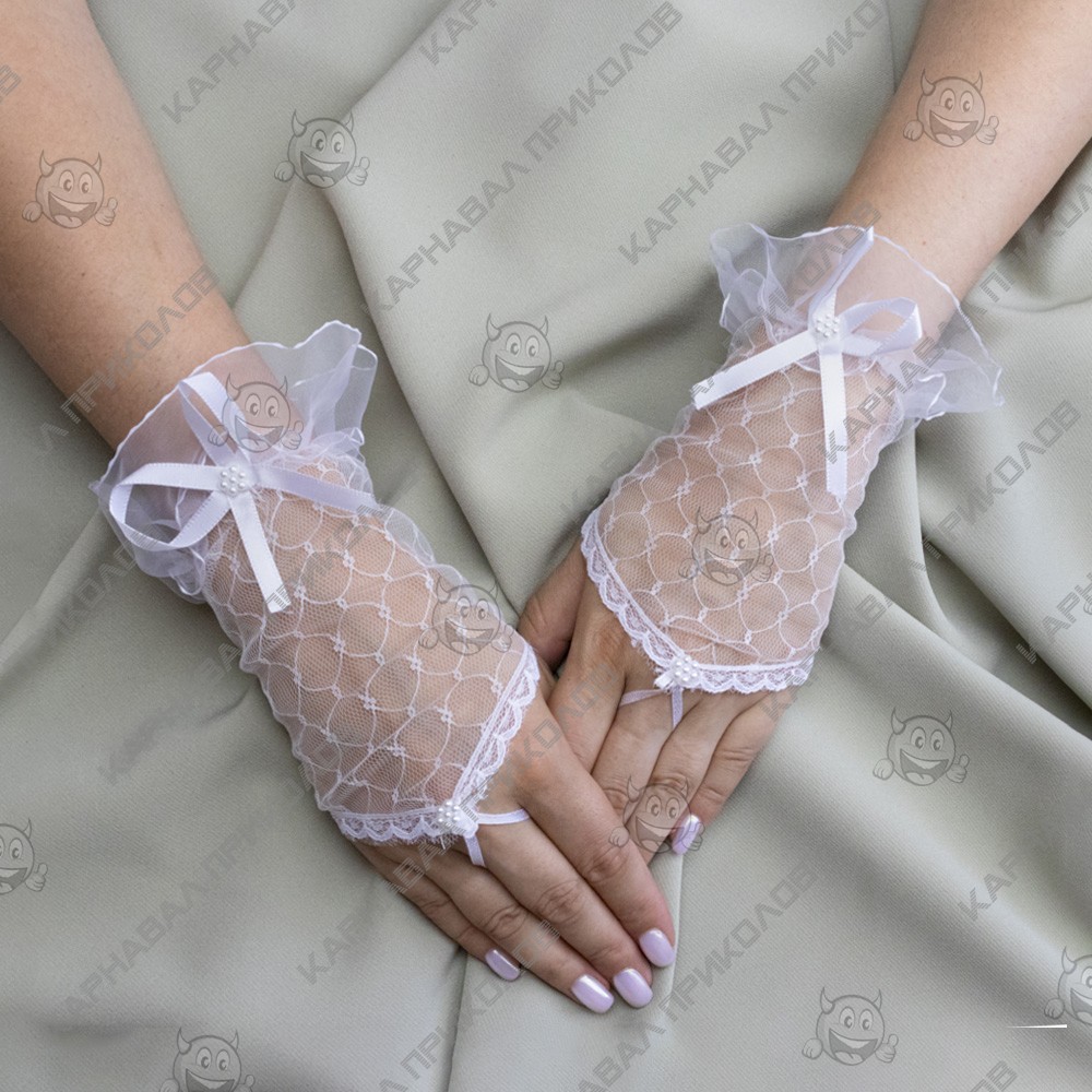 Рукавички мереживні через палець 17см (білі)