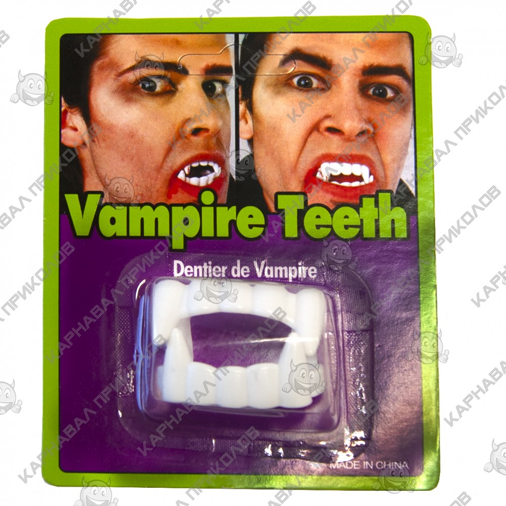 Хочете на тематичній вечірці або Хелловін виглядати незвичайно і жахливо? Але, банальне біле простирадло вже ні кого не лякає? Зуби білі допоможе Вам перетворитися і вдосконалити свій образ, зробивши з Вас справжнього вампіра. Інтернет - магазин Карнавал Приколів представляє Вам незвичайний набір для свята, зроблений з білого харчового пластику. Зуби легко поміщаються у роті, а пазурі надягають на руку, як наперсток, і Вам залишиться доповнити Ваш образ костюмом, і тоді Ваша вечірка точно буде успішною та веселою. Такі незвичайні аксесуари можна використовувати, щоб розіграти друга, вночі одягнувши ці зуби та пазурі, можна непогано пожартувати з Вашого знайомого. Серед нашого широкого асортименту товарів, Ви знайдете безліч незвичайних та оригінальних аксесуарів для різноманітних заходів.