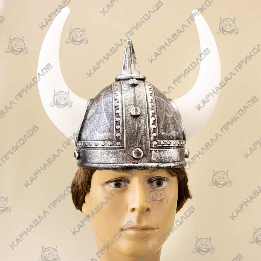 Прикольний яскравий аксесуар Шолом Варяга з рогами (срібло антик), що доповнює Карнавальний костюм. У такому карнавальному головному уборі вікінгу будь-який хлопчик чи чоловік відчує себе сміливим та хоробрим воїном. Адже дорослі теж не проти згадати дитинство і пограти у війну, наприклад на корпоративі. Він ідеально зможе доповнити костюм лютого скандинавського воїна.