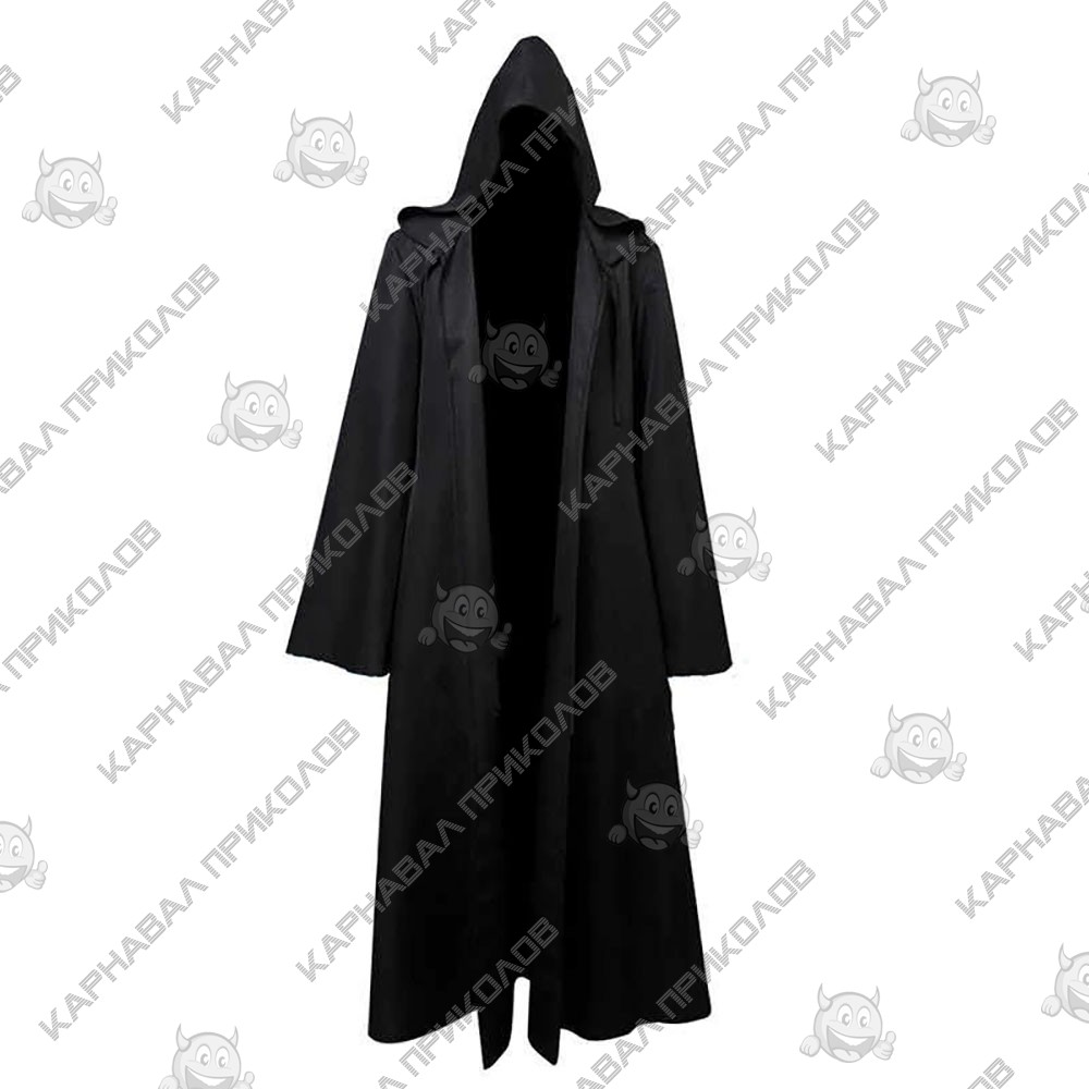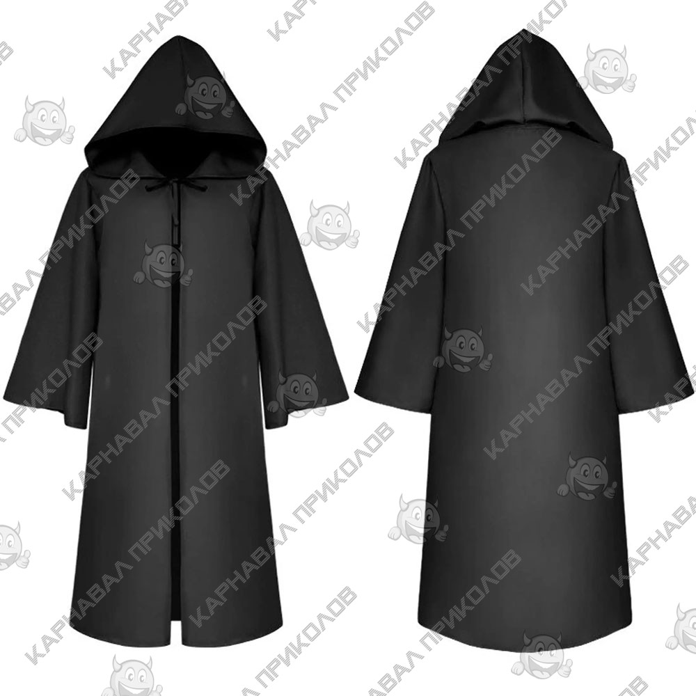 Карнавальний плащ накидка чорного кольору з капюшоном - підійде для створення чарівних чарівників, мага, чарівника на Хелловін, Новий Рік, Корпоратив. Чорний плащ мантія для дорослих виконаний з щільного поліестру чорного кольору з чорною атласною підкладкою. Плащ довжиною від плечей 140см, розмір капюшона: 50х35см. Плащ можна зав'язувати на зав'язки на капюшоні. Купити карнавальний костюм для дорослих оптом та по дропшипінгу недорого в інтернет магазині Карнавал Приколів. Тільки у нас найбільший вибір дорослих карнавальних костюмів за доступною ціною.