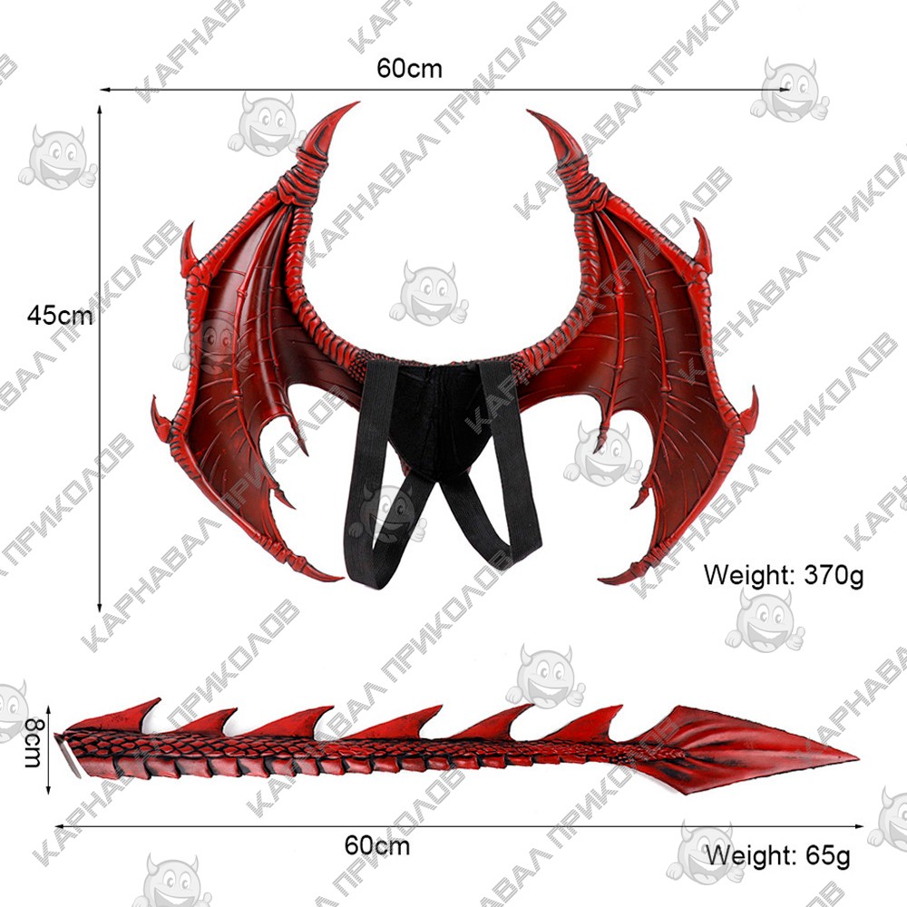Пориньте у світ фантазій з нашим костюмом косплей дракона! Цей комплект включає крила і хвіст, які легко кріпляться на гумці. Виготовлені з м'якого та легкого матеріалу пенагуми, вони забезпечують комфорт та свободу рухів. Яскравий та реалістичний принт на крилах та хвості додає костюму ефектності та робить його ідеальним для косплею, вечірок та тематичних заходів. Перетворіться на могутнього дракона і здивуйте всіх своїм чином!