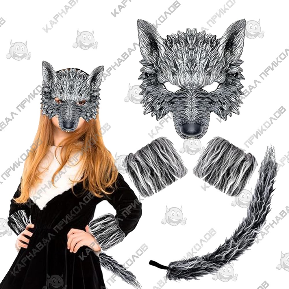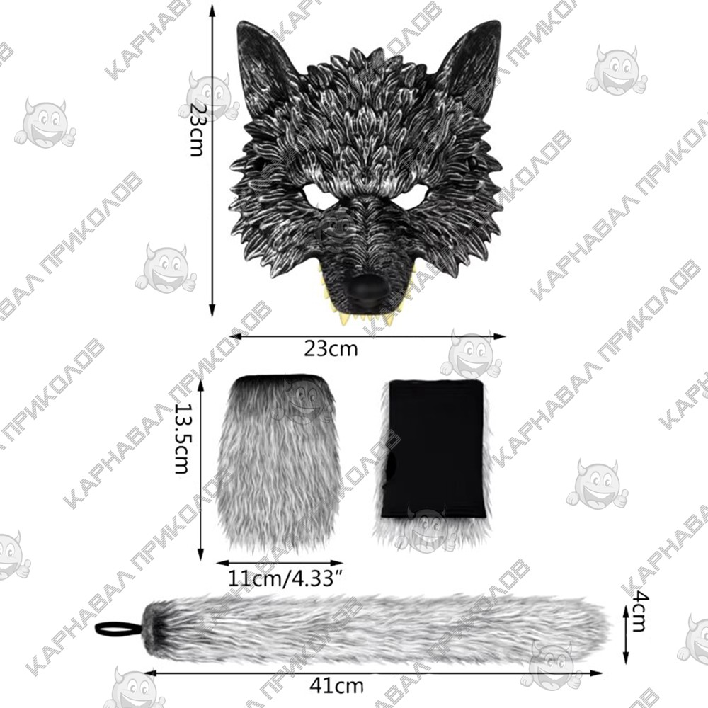 розмір хвоста: 41х4 см, розмір маски: 23х23 см, розмір рукавичок: 11х13,5 см