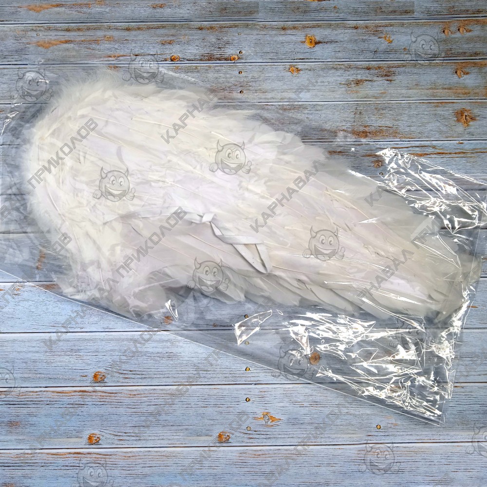 Крила Амура великі 60х58см (білі) ± 3см. Розмір виробу може відрізнятись від вказаного на ±3см. Карнавальні білі крила Амура виготовлені з натурального пір'я на дротяному каркасі, вкритому картоном. Колір пера білий, допускається легка жовтизна на матеріалі (природний відтінок натурального пера), оскільки виріб виготовлений з натурального білого пера. Надійно та практично крила одягаються на плечі за допомогою гумок. Інтернет магазин Карнавал Приколів пропонує Вам купити карнавальні накладні Крила Амура великі 60х58см (білі) оптом. Крила ангела чудово підійдуть як для дитячого ранку, так і для маскарадної вистави чи концерту, фотосесії чи весілля.