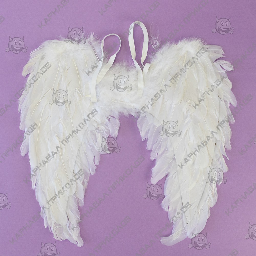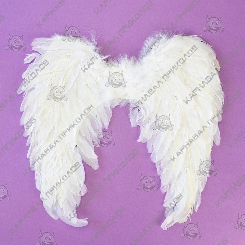 Крила Амура середні 45х45см (білі) ± 3см. Розмір виробу може відрізнятись від вказаного на ±3см. Карнавальні білі крила Амура виготовлені з натурального пір'я на дротяному каркасі, вкритому картоном. Колір пера білий, допускається легка жовтизна на матеріалі (природний відтінок натурального пера), оскільки виріб виготовлений з натурального білого пера. Надійно та практично крила одягаються на плечі за допомогою гумок. Інтернет магазин Карнавал Приколів пропонує Вам купити карнавальні накладні Крила Амура середні 45х45см (білі) оптом. Крила ангела чудово підійдуть як для дитячого ранку, так і для маскарадної вистави чи концерту, фотосесії чи весілля.