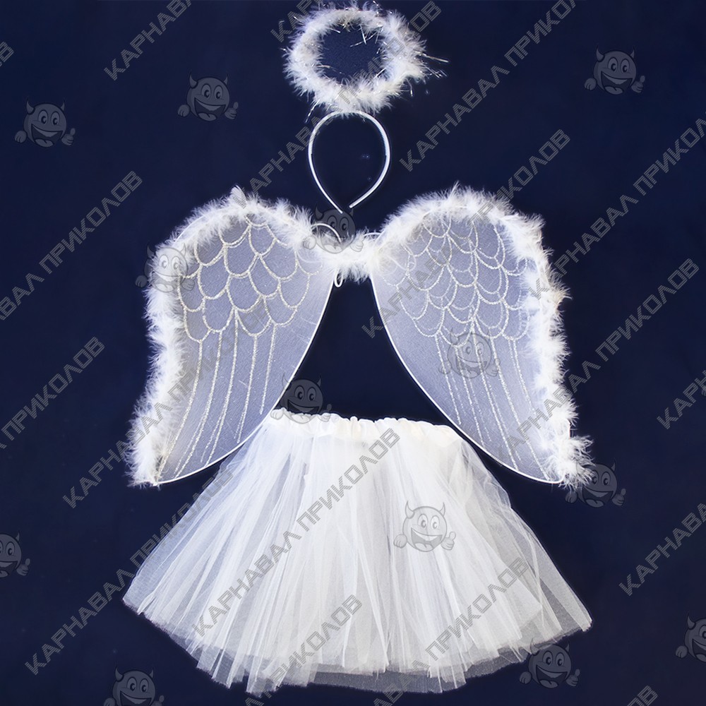 | Додаткові характеристики: | Комплектація: Крила - 64х38х2см Німб: 22х16х16см Спідниця з фатину: талія – 46см, довжина – 30см. Спідниця плісирована із двох шарів фатину. |