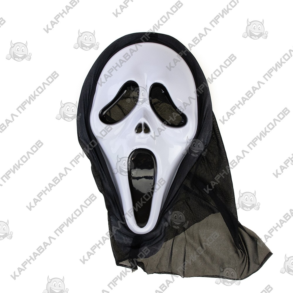 Маска Крик з капюшоном (Halloween Scary Horror mask) виготовлена з пластику. Біла маска з чорним капюшоном закриває все обличчя та голову. Розмір виробу: універсальний. Маска для вечірки надійно фіксується на голові за допомогою чорної гумки. Карнавальні маски принесуть родзинку в образ вашого персонажа на тематичній вечірці, карнавалі або маскараді. Різноманітність образів, безумовно, полегшить пошук оригінального образу. Наш магазин пропонує карнавальні аксесуари оптом та для дропшиперів, ви можете оформити замовлення на сайті Карнавал Приколів та задати будь-які запитання менеджеру, замовивши дзвінок на нашому сайті.