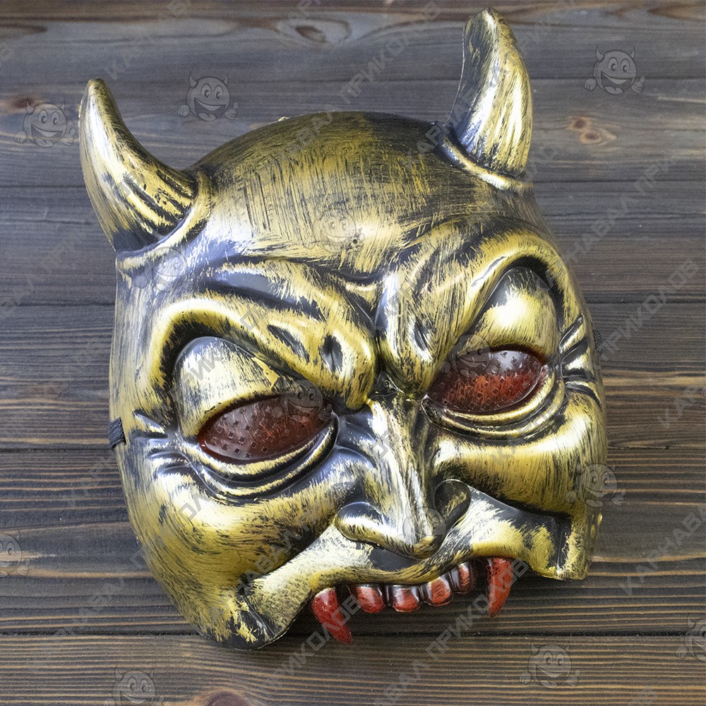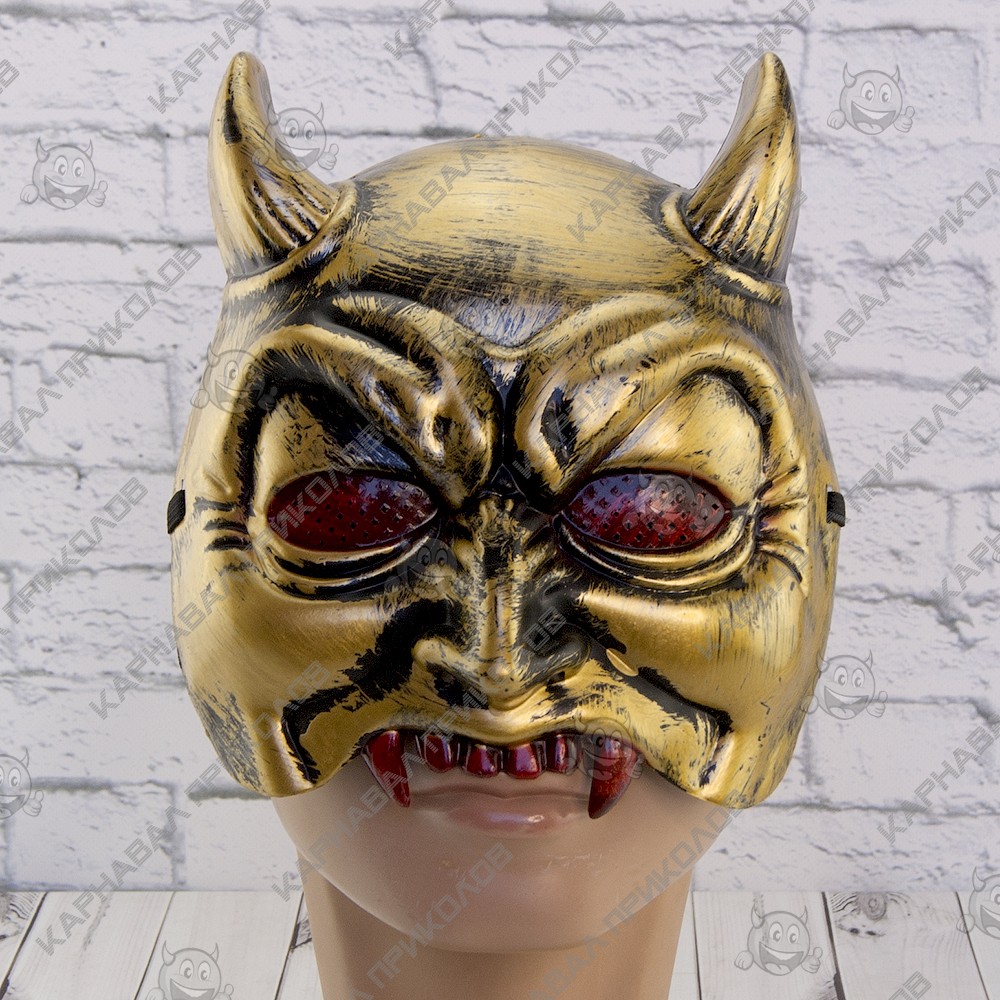 Напівмаска Демон (золота)(Halloween Scary Horror mask) виготовлена з пластику. Золота маска з чорними елементами закриває половину обличчя. Маска з рогами та червоними іклами. Розмір виробу: універсальний. Маска для вечірки надійно фіксується на голові за допомогою чорної гумки. Карнавальні маски принесуть родзинку в образ вашого персонажа на тематичній вечірці, карнавалі чи маскараді. Різноманітність образів, безумовно, полегшить пошук оригінального образу. Наш магазин пропонує карнавальні аксесуари оптом та для дропшиперів, ви можете оформити замовлення на сайті Карнавал Приколів та задати будь-які запитання менеджеру, замовивши дзвінок на нашому сайті.