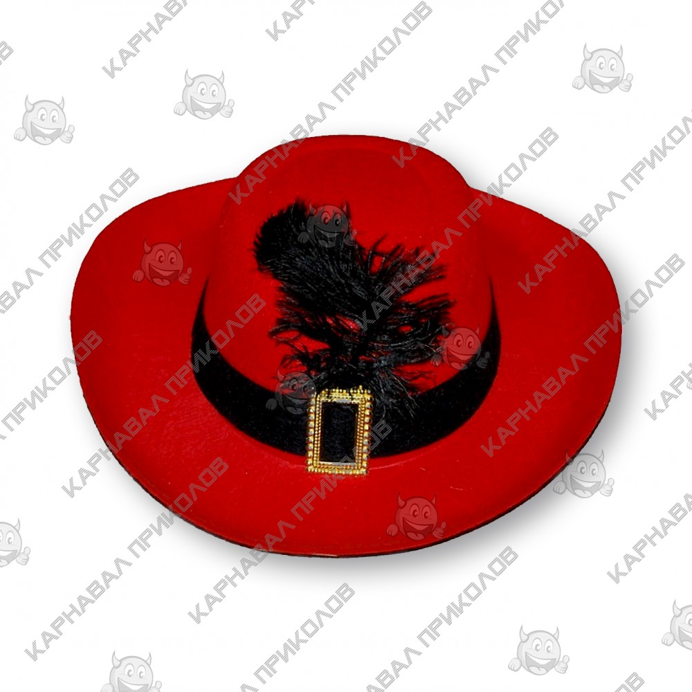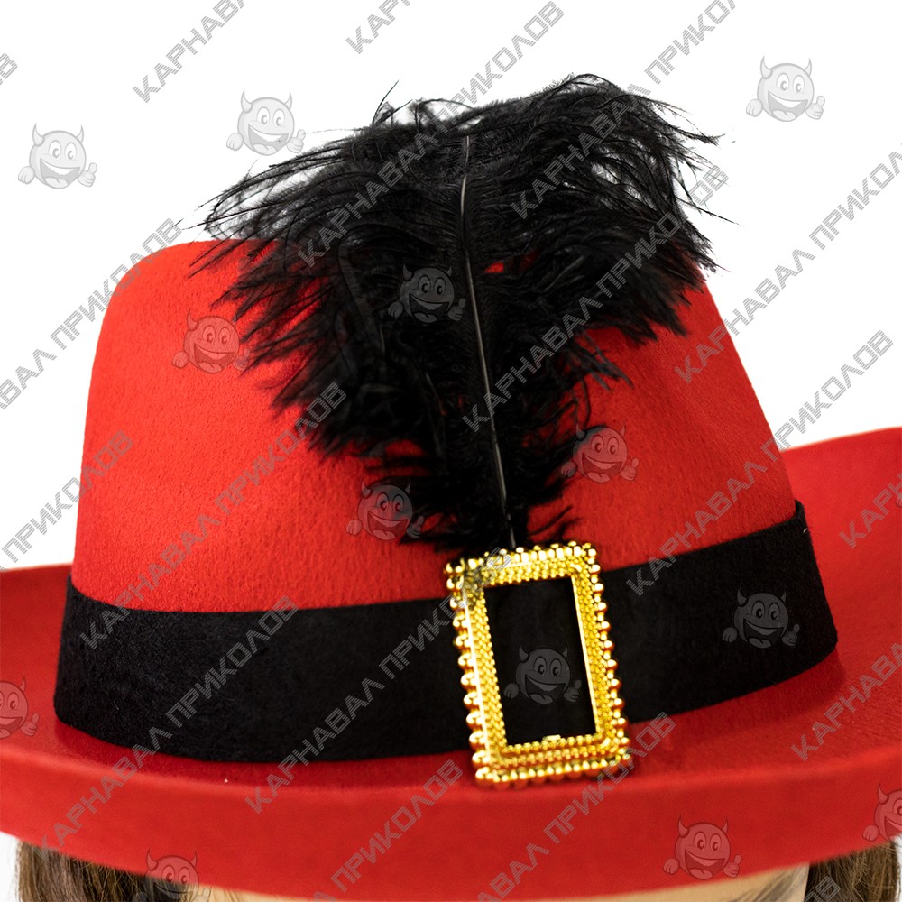Капелюх Мушкетера з пером (червоний) – простий і нехитрий спосіб створити карнавальний образ. Не важливо, що ви одягнете, на будь-якій вечірці, маскараді чи карнавалі ви в центрі уваги. Капелюх Мушкетера з пером (червоний) виготовлений з червоного фетру і декорований чорним пером і стрічкою біля основи капелюха, яскравим акцентом служить бляха золотого кольору на передній частині капелюха. Купуючи Капелюх Мушкетера з пером (чорна) в інтернет-магазині Карнавал Приколів. Ви отримуєте не лише якісний товар, а й 100% позитивних вражень від придбання. Серед нашого широкого асортименту товарів, Ви знайдете безліч незвичайних та оригінальних подарунків для різноманітних заходів. Прикольні капелюхи та карнавальні шапки принесуть родзинку в образ вашого персонажа на тематичній вечірці, карнавалі чи маскараді. Різноманітність форм, фасонів та моделей головних уборів, безумовно, полегшить Ваш пошук оригінального образу.