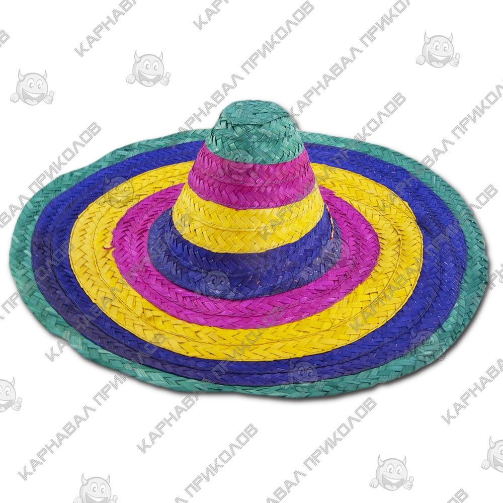 Капелюх Сомбреро 50 см кольоровий - головний убір для вечірки у мексиканському стилі. Купивши Капелюх Сомбреро 50 см кольоровий в інтернет-магазині Карнавал Приколів Ви отримуєте не тільки якісний товар, але й 100% позитивних вражень від придбання. Серед нашого широкого асортименту товарів, Ви знайдете безліч незвичайних та оригінальних подарунків для різноманітних заходів. Прикольні капелюхи та карнавальні шапки принесуть родзинку в образ вашого персонажа на тематичній вечірці, карнавалі чи маскараді. Різноманітність форм, фасонів та моделей головних уборів, безумовно, полегшить Ваш пошук оригінального образу.