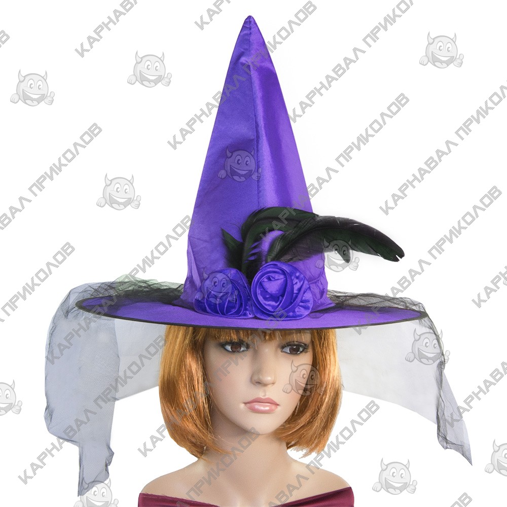 Капелюх Відьми атласний (фіолетовий) - це традиційний атрибут злої чаклунки, чудово доповнить Ваш зовнішній вигляд на урочистості і, можливо, ще не раз стане в пригоді в майбутньому! Атласний капелюх фіолетового кольору декорований бутонами троянди з чорним пір'ям і шлейфом з фатину чорного кольору. Такий капелюх органічно доповнить костюм відьми. Зовнішність відьом є одним з класичних жіночих образів на Хелловіні. Ви зможете втілити в реальність давно задуманий образ! Купуючи Капелюх Відьми атласна (фіолетова) в інтернет-магазині Карнавал Приколів Ви отримуєте не тільки якісний товар, а й 100% позитивних вражень від придбання. Серед нашого широкого асортименту товарів, Ви знайдете безліч незвичайних та оригінальних подарунків для різноманітних заходів. Прикольні капелюхи та карнавальні шапки принесуть родзинку в образ вашого персонажа на тематичній вечірці, карнавалі чи маскараді. Різноманітність форм, фасонів та моделей головних уборів, безумовно, полегшить Ваш пошук оригінального образу.