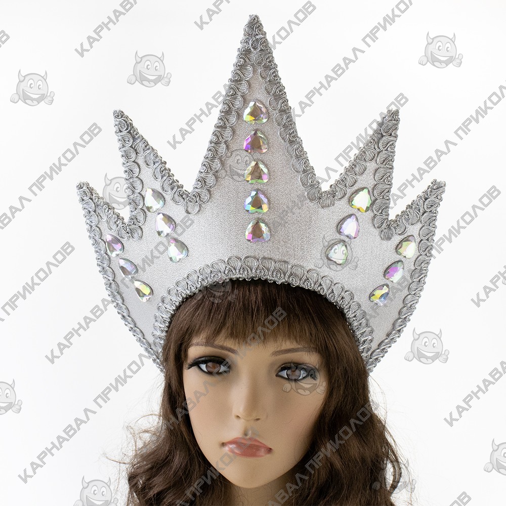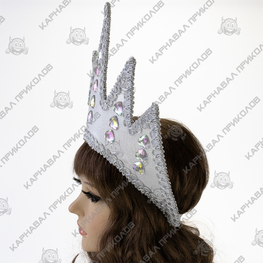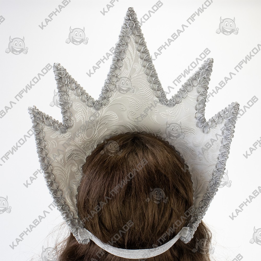 Інтернет магазин Карнавал Приколів пропонує Вам купити оптом по-справжньому зимовий та стильну корону, повністю ручної роботи, для образу Новорічної Снігової Королеви. Дивовижний різдвяний декор - ошатний аксесуар для фотосесії, свята, корпоративу, створення унікального образу для новорічної урочистості. Яскраво граючі каміння хамеліони, вишукано переливаються паєтки на срібній блискучій парчі виглядають просто чудово і дуже святково, а також створюють святковий настрій і ідеально впишуться в новорічні урочистості. Композиція надійно закріплена на картонному каркасі 54-56 розмірів, з гумкою. Виготовлення Корона Снігової королеви (срібна) виробляється нашими майстрами на замовлення в строк від 1-го до 3-х робочих днів.