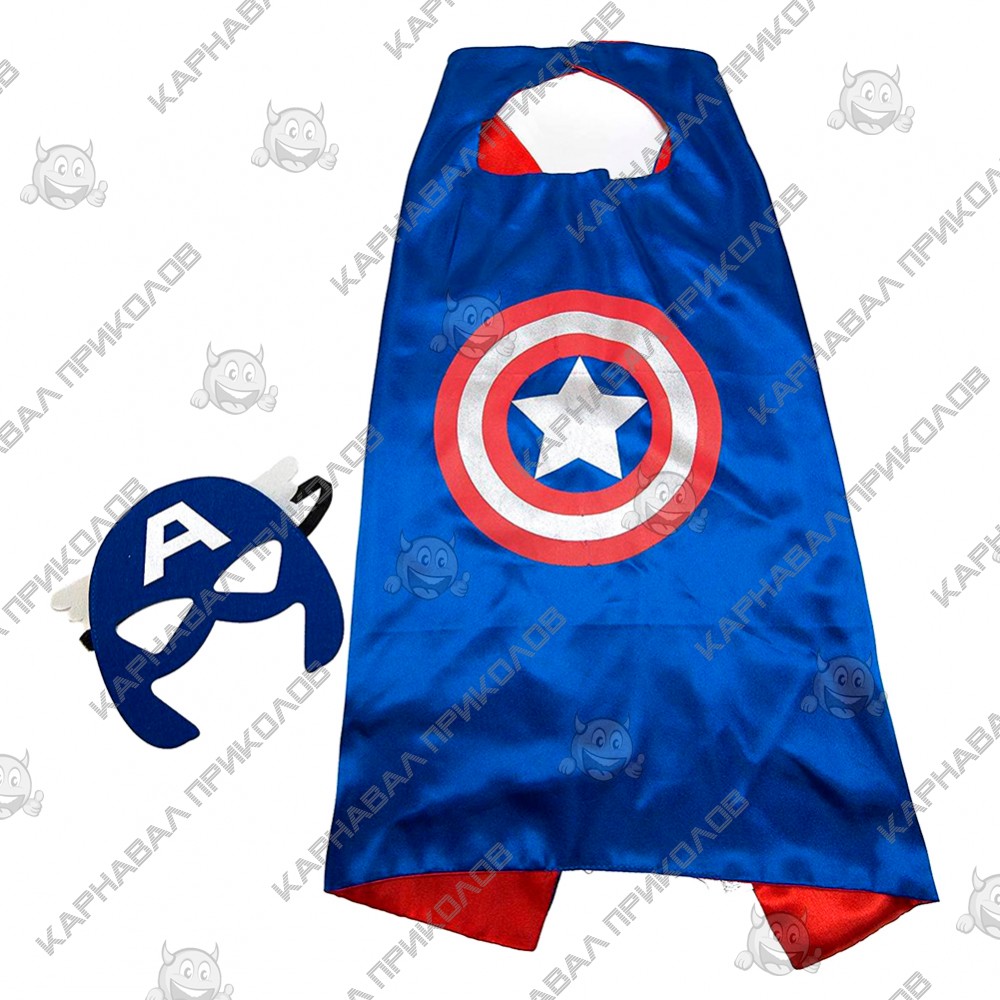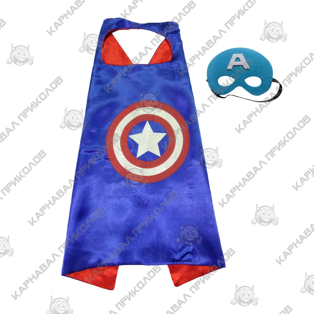 Маскарадний плащ з маскою Капітан Америка чудово підійде для тематичної вечірки, свята, дня народження. Він допоможе Вашому малюку відчути себе наполегливим супергероєм. Створіть неповторну атмосферу свята супергероїв за допомогою яскравого костюма. На створення образу потрібно всього кілька секунд, дитина сама легко впорається з цим завданням. Яскравий атласний плащ застібається на липучку, а фетрова маска зручно кріпиться на голові за допомогою гумки. Ми пропонуємо Вам купити маскарадний плащ з маскою Капітан Америка в інтернет-магазині Карнавал Приколів і поринути в атмосферу світу супергероїв та суперлиходіїв.