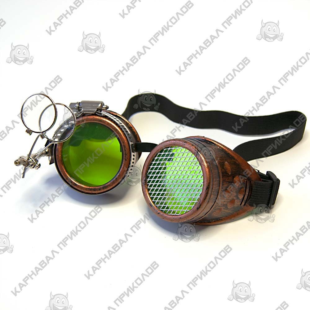 Окуляри Стимпанк Гогли Авіатори з лупою (мідь антик) F-426