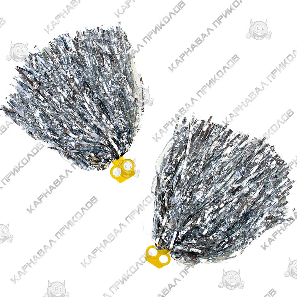 Помпони для черлідингу з кільцями для пальців уп. 2 шт (срібні) - помпоні для черлідінгу та танців Pom-Poms срібного кольору. Декоративні пухнасті кулі з зібраних у пучок вузьких смужок мішури, виготовлених з дуже тонкого і в той же час надзвичайно міцного матеріалу, що обумовлює дуже незначну вагу цього аксесуара та високу стійкість до зношування та механічних пошкоджень. Для комфортного жонглювання, брасків та лову помпонів, передбачена зручна рукоятка з двома відсіками для пальців, виготовлена з пластику, яка зручно фіксується двома пальцями в руці і не ковзає. У комплекті постачається 2 помпони. Наш магазин пропонує товари оптом та для дропшиперів, ви можете оформити замовлення на сайті Карнавал Приколів та задати будь-які запитання, що цікавити менеджер, замовивши дзвінок на нашому сайті.