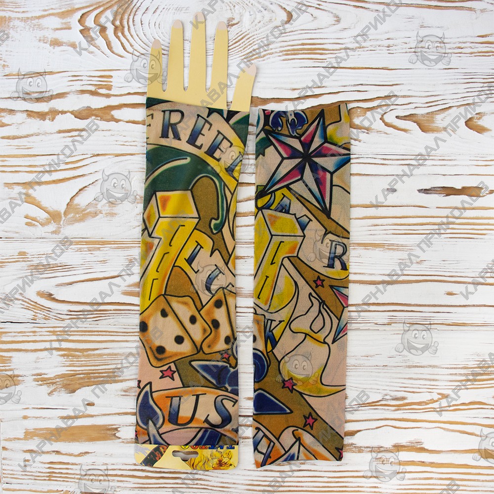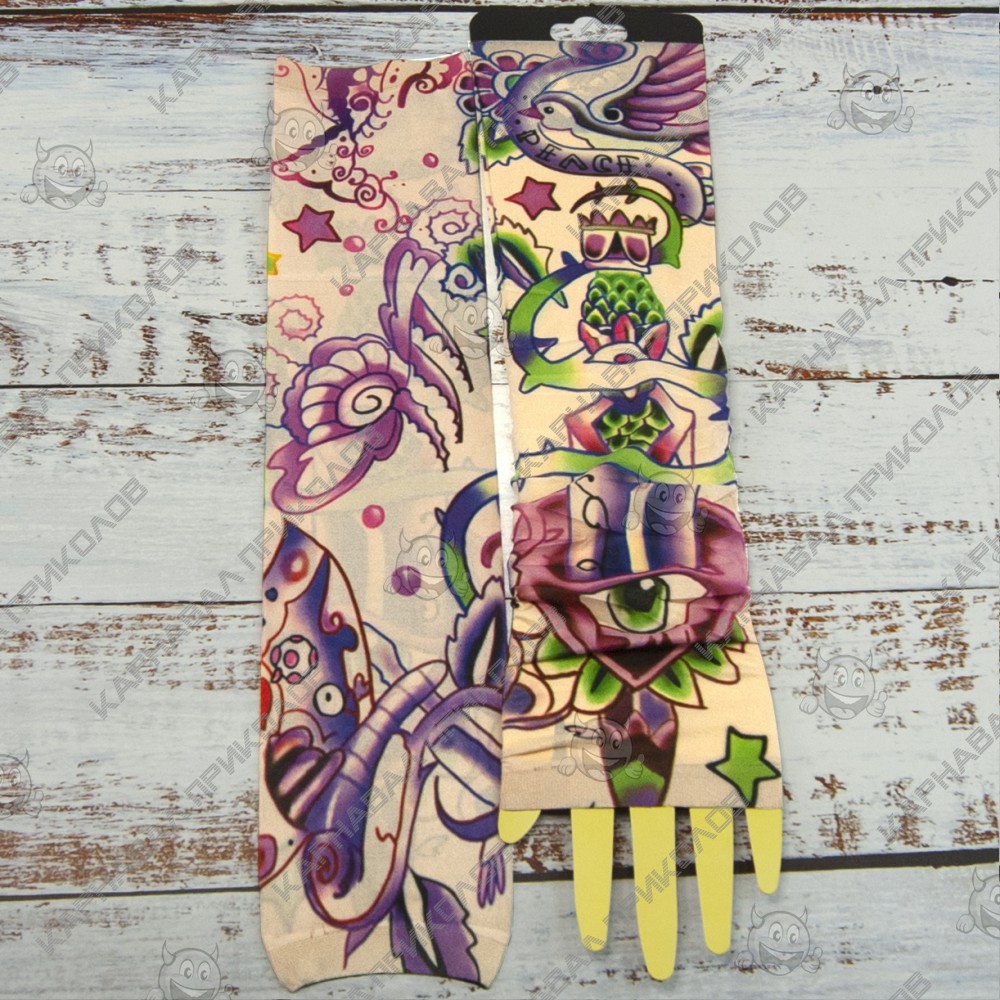 Ви мріяли про татуювання, але не могли наважитися? Бажаєте розширити асортимент Вашого магазину карнавальних аксесуарів? Тоді оптовий інтернет магазин Карнавал Приколів пропонує купити нейлонові безшовні тату рукави з кольоровим малюнком. Тату рукава виготовлені з дихаючого матеріалу, за складом нагадує капрон з пористою структурою, завдяки чому шкіра під ними не потіє і не викликає подразнень. Мають універсальний розмір. Одягаються тату рукава від зап'ястя до плеча, поверх Ви можете одягати футболку або сорочку з лагідним рукавом. Знімні тату рукави реалістично виглядають на руці, створюючи враження ефектного татуювання. Рукави можна прати.