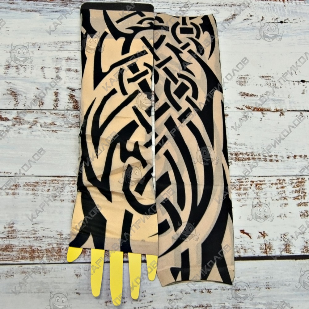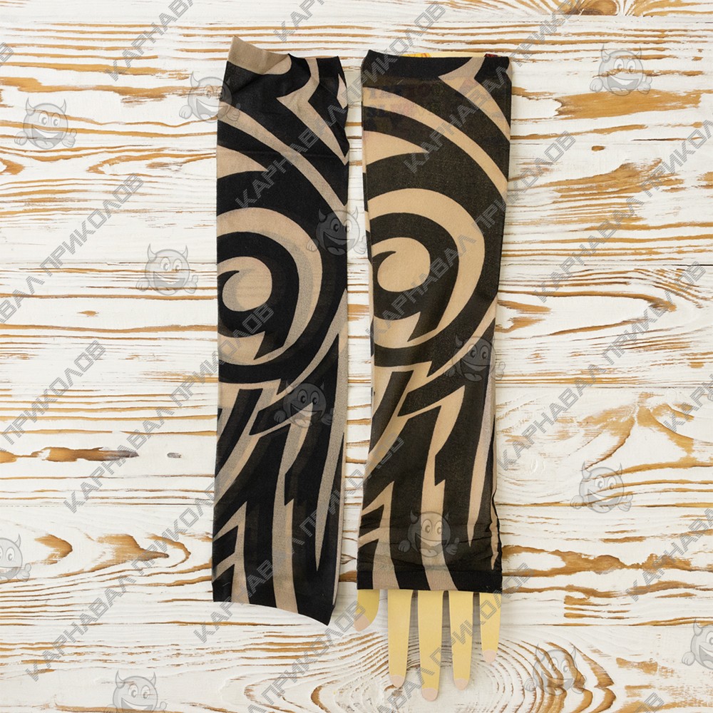 Ви мріяли про татуювання, але не могли наважитися? Бажаєте розширити асортимент Вашого магазину карнавальних аксесуарів? Тоді оптовий інтернет магазин Карнавал Приколів пропонує купити нейлонові безшовні тату рукави з кольоровим малюнком. Тату рукава виготовлені з дихаючого матеріалу, за складом нагадує капрон з пористою структурою, завдяки чому шкіра під ними не потіє і не викликає подразнень. Мають універсальний розмір. Одягаються тату рукава від зап'ястя до плеча, поверх Ви можете одягати футболку або сорочку з лагідним рукавом. Знімні тату рукави реалістично виглядають на руці, створюючи враження ефектного татуювання. Рукави можна прати.