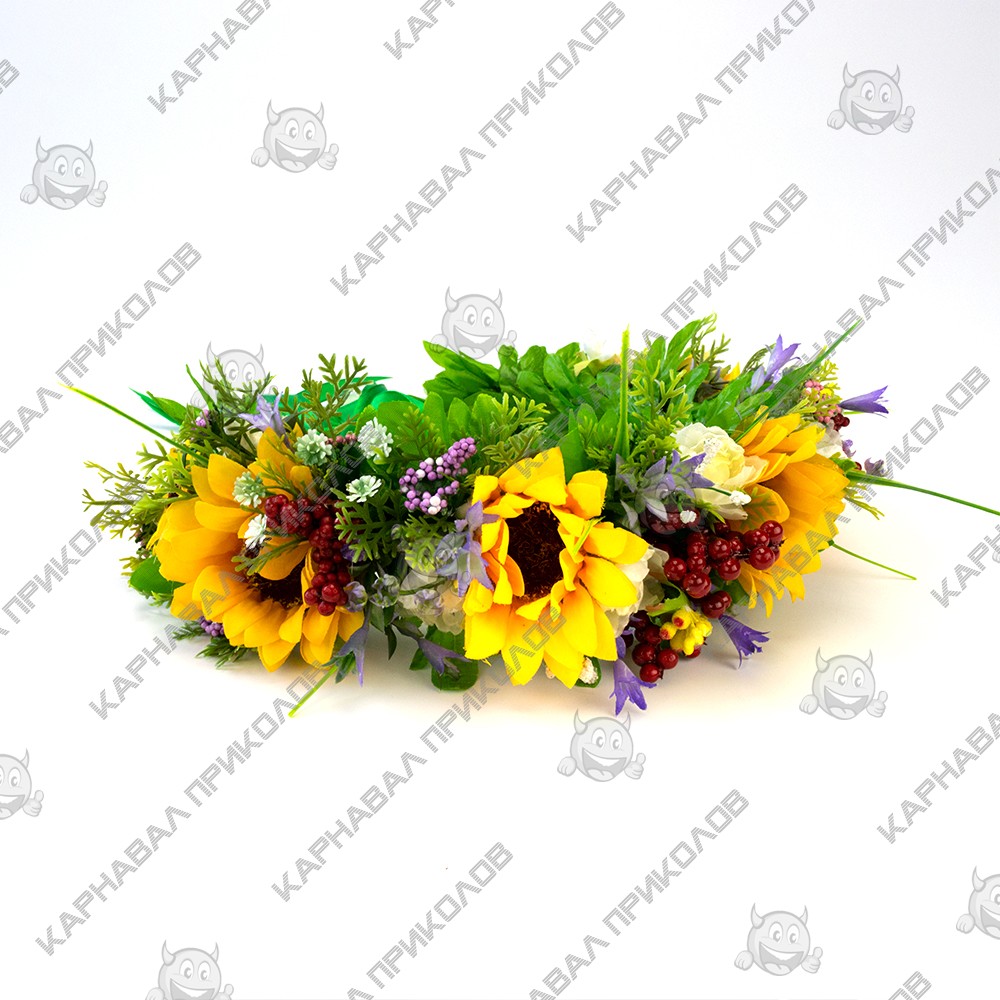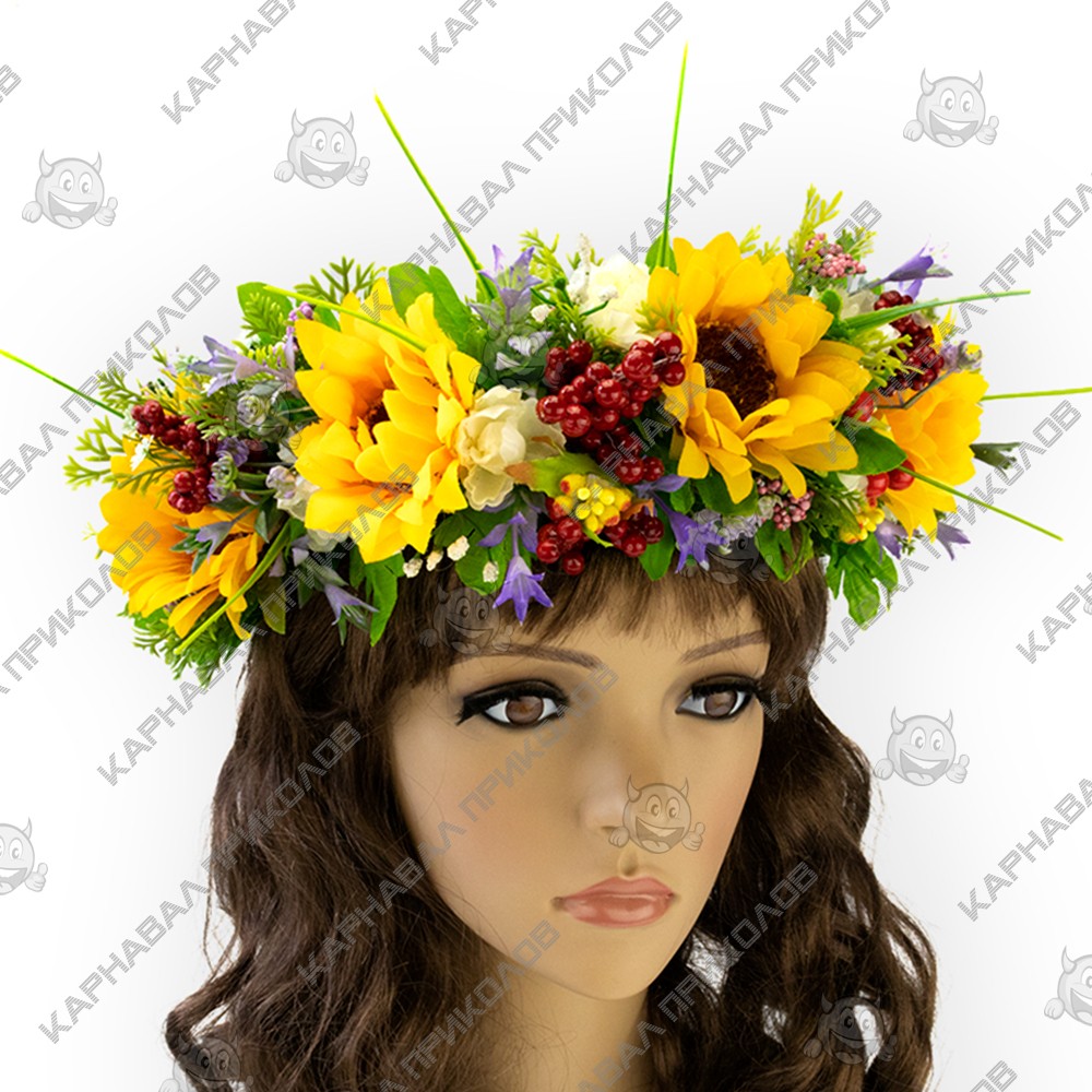 Український віночок об'ємний на голову Амєлія 12886– виконаний зі штучних квітів соняшнику дзвіночка, гіпсофілу, різновидної троянди, декоративні грона ягід калини, штучного листя, травинок. Український вінок із квітів і стане чудовим доповненням українського образу для фотосесії. Незважаючи на об'ємність, етнічний віночок дуже легкий. Виготовлений на міцній основі (каркасі із дроту), тому добре тримає форму, розмір регулюється за допомогою стрічок ззаду. Кріплення – стрічка (під волоссям). Виготовлення Український віночок об'ємний на голову Амєлія 12886 виробляється нашими майстрами на замовлення в термін від 1-го до 3-х робочих днів. Будьте у тренді – доповніть свій образ гарним аксесуаром, який Ви можете підібрати на нашому сайті. Пишний український вінок чудово підійде для патріотичних фотосесій, дефіле, сценічних виступів, народних етнофестивалів та ярмарків, зйомок фільму або кліпу, концертів та флешмобів, Українських весіль та сімейних урочистостей, шкільних та дитячих свят. Компанія Карнавал Приколов залишає за собою право вносити зміни до технічних характеристик, кольору, комплектації та конструкції, що не погіршують експлуатаційних характеристик виробів, без попереднього повідомлення. Зображення та колір представленого товару можуть незначно відрізнятися від оригіналу продукції, залежно від роздільної здатності та налаштувань монітора, а також умов освітлення під час зйомки. Шукаєте оригінальний головний убір для особливого випадку? У нашому магазині ви знайдете багато цікавих варіантів! Рекомендуємо звернути увагу на Український віночок об'ємний на голову Амєлія 12886 – чудовий спосіб поринути в атмосферу етнічного свята. Поповніть свій образ стильним аксесуаром, що легко підібрати на сайті Карнавал Приколів!