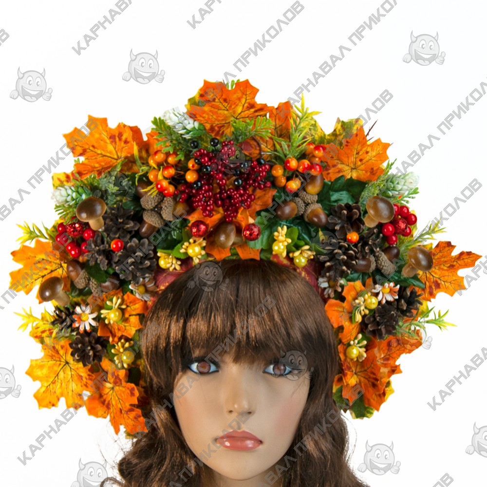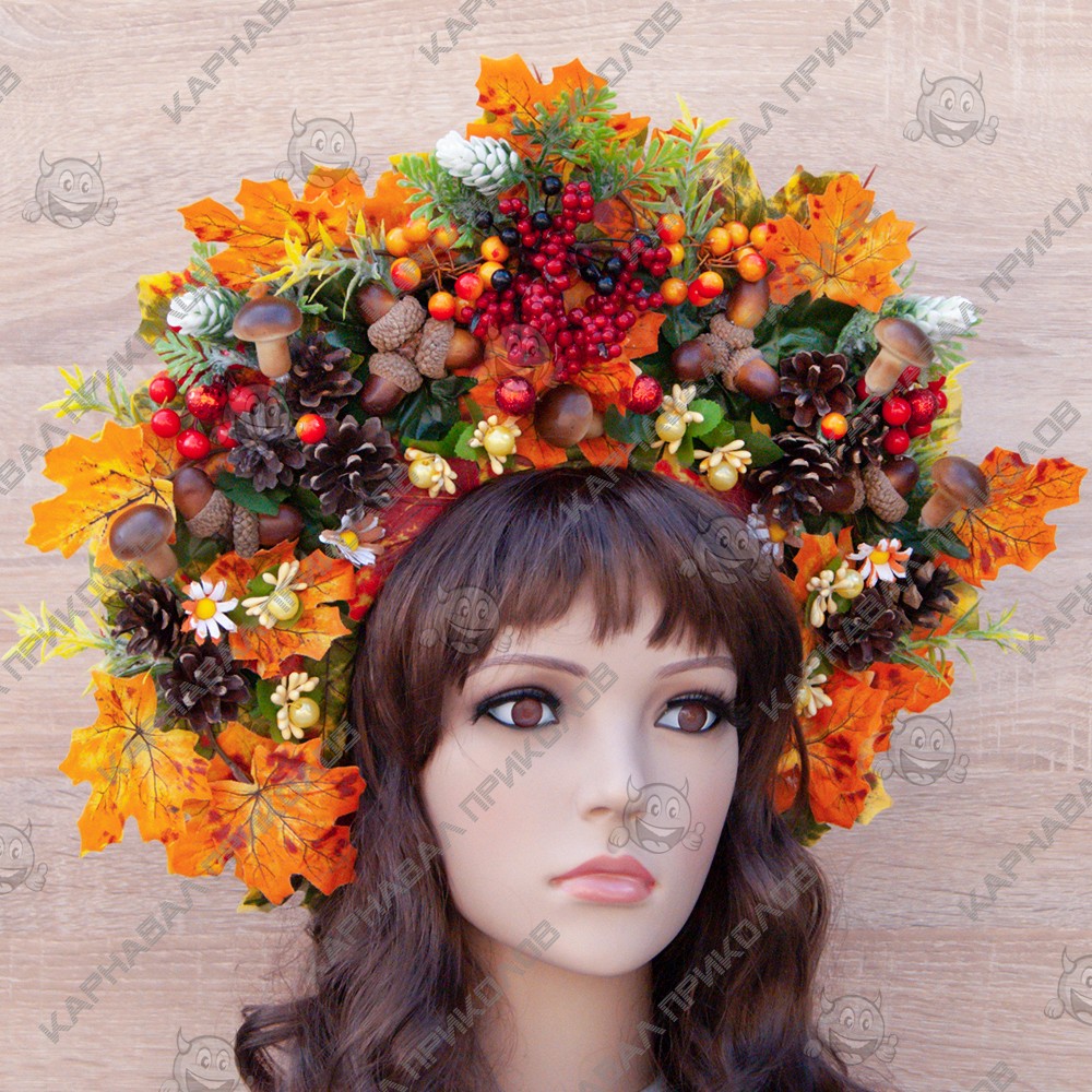 Український осінній вінок високий на голову Дари Ліса 11992- виконаний з штучного листя, натуральних шишок, ягід калини та тичинок, доповнений декоративними гілочками. Незважаючи на об'ємність, етнічний осінній вінок дуже легкий. Виготовлений на міцній основі (каркасі з дроту), тому добре тримає форму, розмір регулюється за допомогою атласної стрічки ззаду. Висота корони по центровій частині прибл. 15 см. Фіксація - атласна стрічка, яка вишукано звисає по волоссю, додаючи особливого шарму. з квітковою окрасою на голову Український вінок у стилі Олі Полякової легко можна створити оригінальний образ на свято. Виготовлення Українського осіннього вінка висогого на голову Дари Ліса 11992 провадиться нашими майстрами на замовлення в строк від 1-го до 3-х робочих днів. Пишний український вінок чудово підійде для фотосесії, дефіле, будь-якого виступу на сцені, етнофестивалю, зйомок фільму чи кліпу. Ми пропонуємо Вам купити прикрасу для волосся з авторської серії корон ручної роботи в національному стилі в інтернет-магазині Карнавал Приколів та поринути в атмосферу етнічного свята. Будьте у тренді – доповніть свій образ гарним аксесуаром, який Ви можете підібрати на нашому сайті! Компанія Карнавал Приколів залишає за собою право вносити зміни до технічних характеристик, кольору, комплектації та конструкції, що не погіршують експлуатаційних характеристик виробів, без попереднього повідомлення. Зображення та колір представленого товару можуть незначно відрізнятися від оригіналу продукції, залежно від роздільної здатності та налаштувань монітора, а також умов освітлення під час зйомки. Прикраса на голову на СВЯТО ОСЕНІ, СВЯТО ВРОДЖУЮ.