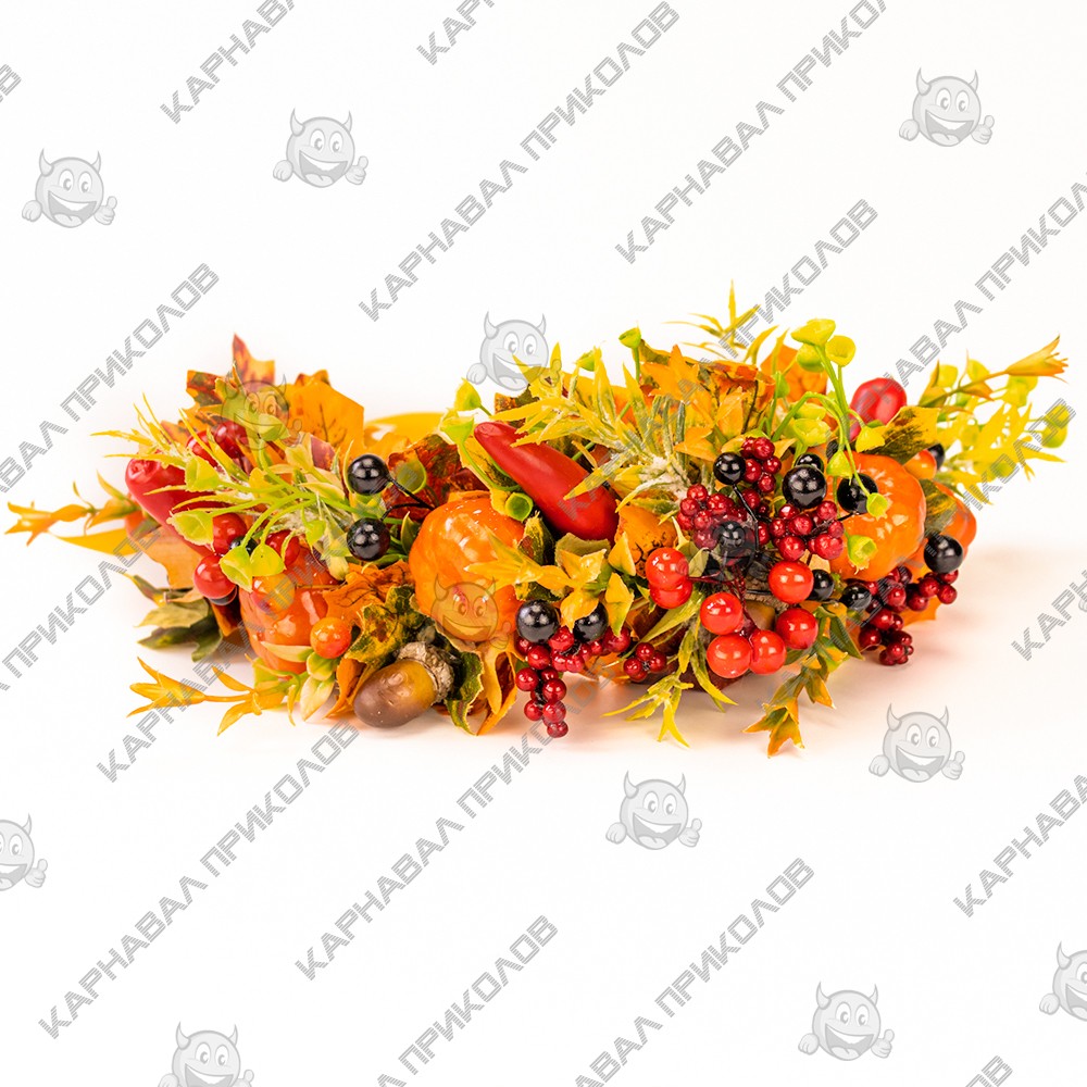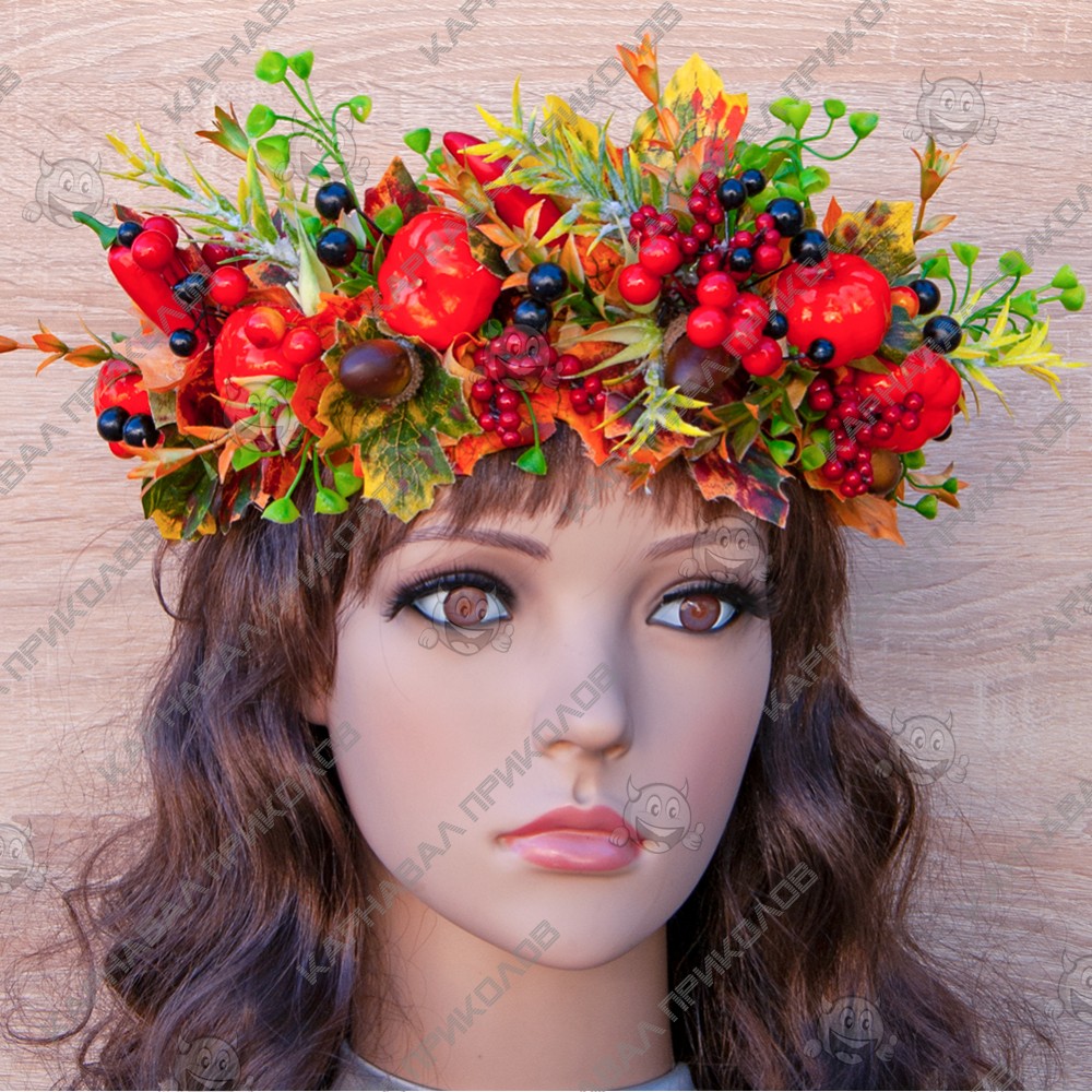 Український осінній віночок на голову Красимира 11234 - виконаний зі штучного осіннього кленового листя, та ягід калини, зелених гілочок та декорований травинками. Український вінок із квітів і стане чудовим доповненням українського образу для фотосесії. Незважаючи на об'ємність, дуже легкий. Виготовлений на міцній основі (каркасі з дроту діаметром 17см), тому добре тримає форму, розмір регулюється за допомогою атласної стрічки ззаду. Фіксація - атласна стрічка, яка вишукано звисає по волоссю, додаючи особливого шарму. Виготовлення Українського осіннього вінка корони Красимира 11234 проводиться нашими майстрами на замовлення в строк від 1-го до 3-х робочих днів. Ми пропонуємо Вам купити прикрасу для волосся з авторської серії Handmade корон в українському національному стилі в інтернет-магазині Карнавал Приколів та поринути в атмосферу етнічного свята. Будьте у тренді – доповніть свій образ гарним аксесуаром, який Ви можете підібрати на нашому сайті! Компанія Карнавал Приколів залишає за собою право вносити зміни до технічних характеристик, кольору, комплектації та конструкції, що не погіршують експлуатаційних характеристик виробів, без попереднього повідомлення. Зображення та колір представленого товару можуть незначно відрізнятися від оригіналу продукції, залежно від роздільної здатності та налаштувань монітора, а також умов освітлення під час зйомки.