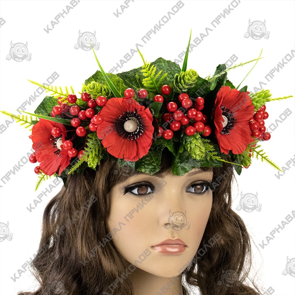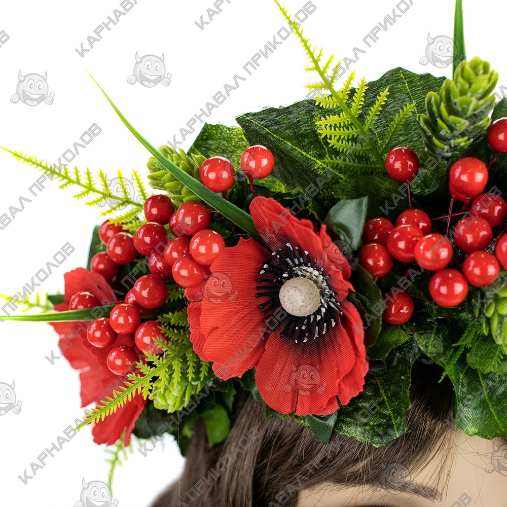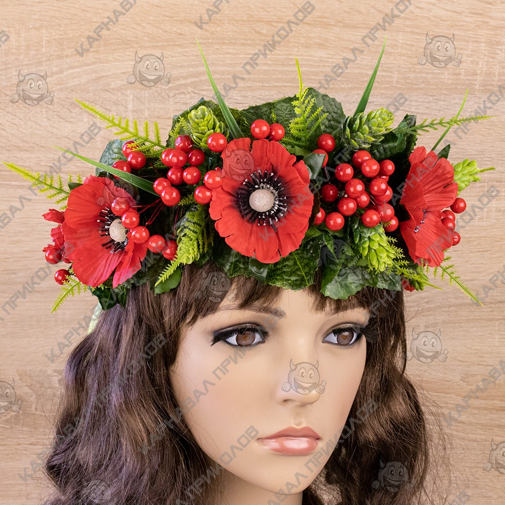 Український віночок об'ємний на голову Ружена 13090 – виконаний зі штучних великих червоних маків та гілочок калини різних розмірів, штучного листя, травинок. Український вінок із квітів і стане чудовим доповненням українського образу для фотосесії. Незважаючи на об'ємність, етнічний віночок дуже легкий. Виготовлений на міцній основі (каркасі із дроту), тому добре тримає форму, розмір регулюється за допомогою стрічок ззаду. Кріплення – стрічка (під волоссям). Виготовлення Український віночок об'ємний на голову Ружена 13090 виробляється нашими майстрами на замовлення в строк від 1-го до 3-х робочих днів. Будьте у тренді – доповніть свій образ гарним аксесуаром, який Ви можете підібрати на нашому сайті. Пишний український вінок чудово підійде для фотосесії, дефіле, будь-якого виступу на сцені, етнофестивалю, зйомок фільму чи кліпу. Компанія Карнавал Приколов залишає за собою право вносити зміни до технічних характеристик, кольору, комплектації та конструкції, що не погіршують експлуатаційних характеристик виробів, без попереднього повідомлення. Зображення та колір представленого товару можуть незначно відрізнятися від оригіналу продукції, залежно від роздільної здатності та налаштувань монітора, а також умов освітлення під час зйомки. Шукаєте оригінальний головний убір для особливого випадку? У нашому магазині ви знайдете багато цікавих варіантів! Рекомендуємо звернути увагу на Український віночок об'ємний на голову Ружена 13090 – чудовий спосіб поринути в атмосферу етнічного свята. Поповніть свій образ стильним аксесуаром, що легко підібрати на сайті Карнавал Приколів!