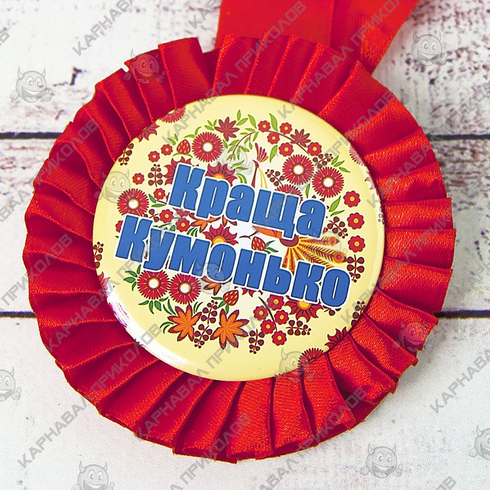 Медаль прикольна Краща кумонько - оригінальна жартівлива медаль, яку можна подарувати Куме на хрестини, на день народження або просто як презент разом з якимсь подарунком. Незалежно від віку, прикольні подарунки Куме – це завжди зворушливо та приємно. Кріпиться на яскраву стрічку. Медаль виконана з пластику декорована атласною стрічкою, діаметром розетки 8,5 см та діаметром жетону 5,8см, атласною стрічкою довжиною 35см. Медаль виготовляється на замовлення. Обміну та поверненню не підлягає. Напис нанесений українською мовою. Серед нашого широкого асортименту товарів, Ви знайдете безліч незвичайних та оригінальних подарунків для різноманітних заходів. Наш магазин пропонує товари оптом та для дропшиперів, ви можете оформити замовлення на сайті Карнавал Приколов та задати будь-які питання, що цікавлять менеджеру, замовивши дзвінок на нашому сайті.