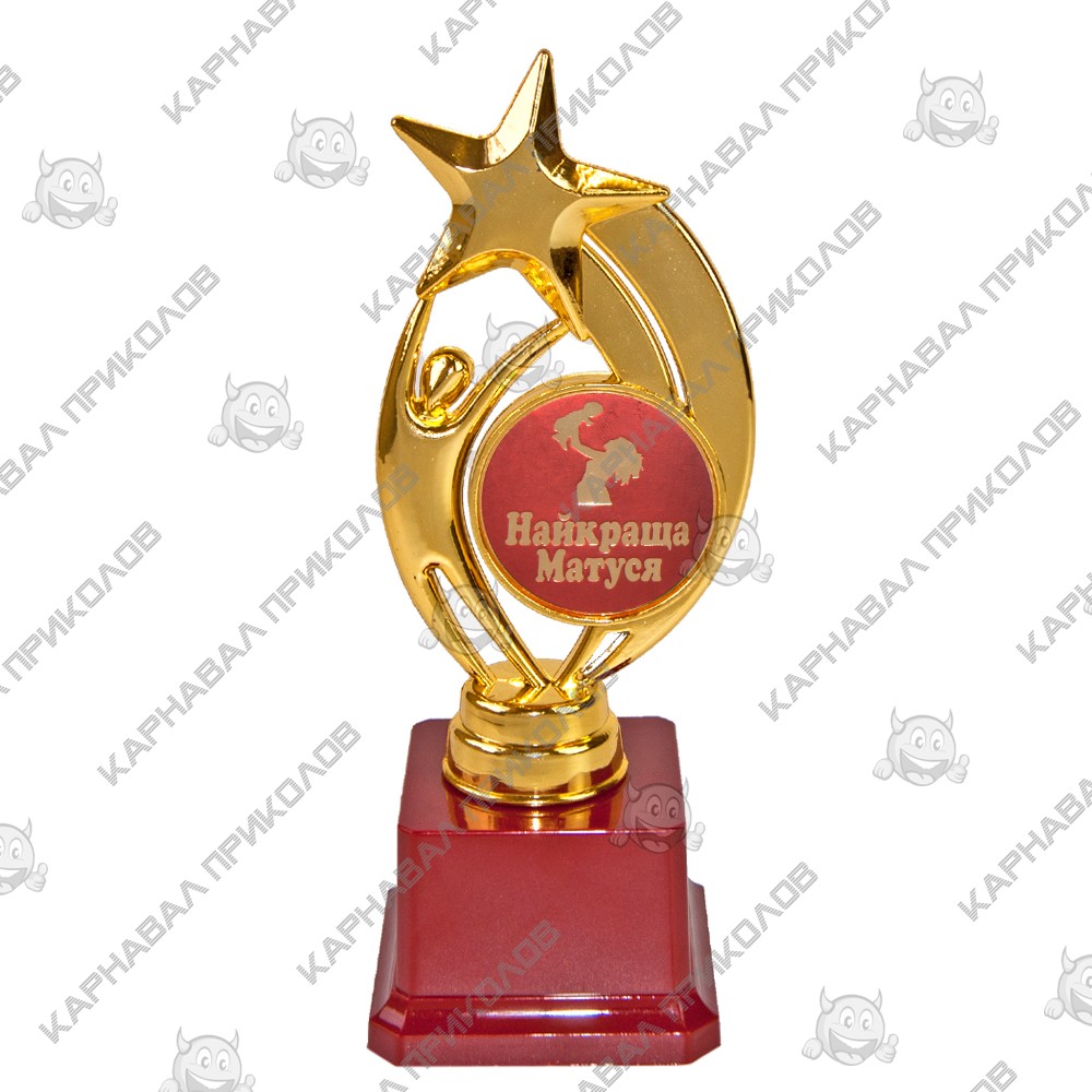 Статуетка 57209Т Найкраща мати Зіркова година - Світлий, ніжний образ матері завжди стукає в нашому серці любов'ю і теплом. Зіркова година стане прекрасним і оригінальним подарунком рідній людині – мамі. Нехай щохвилини дивлячись на неї, ваша мама відчуває, що вона потрібна, незабутня, кохана. Статуетка упаковується в індивідуальний тубус з прозорого пластику. Унікальне пакування розроблене компанією Карнавал Приколів. На бордовому п'єдесталі статуетки може бути присутня імітація мармурових розлучень. Інтернет-магазин Карнавал Приколів пропонує купити найкращій мамі у світі таку зіркову, прикольну нагороду. Скажіть, ну хто, як не мама, заслужив, щоб йому дістали всі зірки щастя на безхмарному хмарочосі долі?