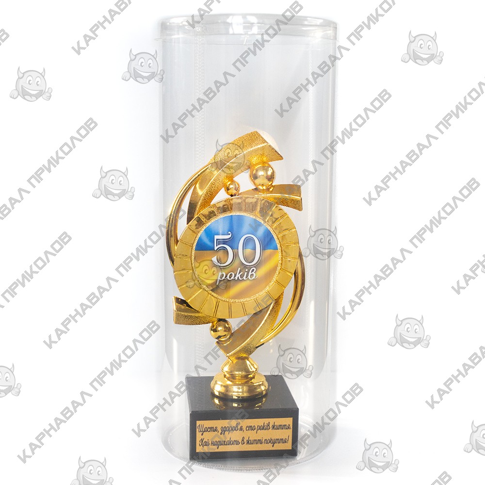 Шукаєте ідеальний подарунок на ювілей? Хочете здивувати і порадувати іменинника цього особливого дня? Не знаєте, що подарувати батькові, начальнику чи другу? У нас є рішення – статуетка Ювілейна! Статуетка на ювілей - це не просто сувенір, це символ вашої любові та поваги. Це оригінальний подарунок, що запам'ятовується, який викличе посмішку і радість у ювіляра. Статуетка являє собою дві переплетені вигнуті стрічки всередині розташований круглий медальйон на якому розташовується жетон з написом. Статуетка выконана із пластику з покриттям під золото на стійкій підставці з натурального каменю та витонченим написом на золотому фоні з вітанням українською мовою. Нажетон статуетки на синьо-жовтому фоні вказується знаменна дата. Статуетка упаковується в індивідуальний тубус з прозорого пластику. Унікальне пакування розроблене компанією Карнавал Приколів. Не пропустіть свій шанс зробити ювіляру незабутній подарунок! Замовте статуетку прямо зараз на нашому сайті або зателефонуйте нашому менеджеру по телефону. Статуетка від Карнавал Приколів – це подарунок, який оцінять усі!