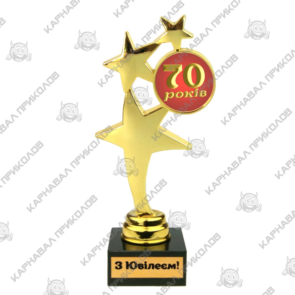 Який подарунок вибрати на ювілей? Чим потішити іменника в ці урочисті для нього хвилини? Як часто ми не можемо вирішити, що подарувати батькові? Яким повинен бути подарунок начальнику? Що вручити на ювілей другові? Відповідь проста – ювіляру потрібна статуетка! Для гарного настрою цього дня потрібні оригінальні подарунки та сувеніри, дивлячись на які ювіляр згодом усміхнеться. Статуетка подарункова (нагородна) у вигляді скупчення зірок на підставці з натурального каменю та витончений напис З Ювілеєм! на золотому фоні та вказівкою знаменної дати – справить враження і, безперечно, стане чудовим подарунком на згадку! Статуетка виконана із пластику з покриттям благородного золотистого кольору з підставкою з натурального каменю. Статуетка упаковується в індивідуальний тубус з прозорого пластику. Унікальне пакування розроблене компанією Карнавал Приколів. Наш магазин пропонує товари оптом та для дропшиперів, ви можете оформити замовлення на сайті Карнавал Приколів та задати будь-які питання, що цікавлять менеджеру, замовивши дзвінок на нашому сайті.