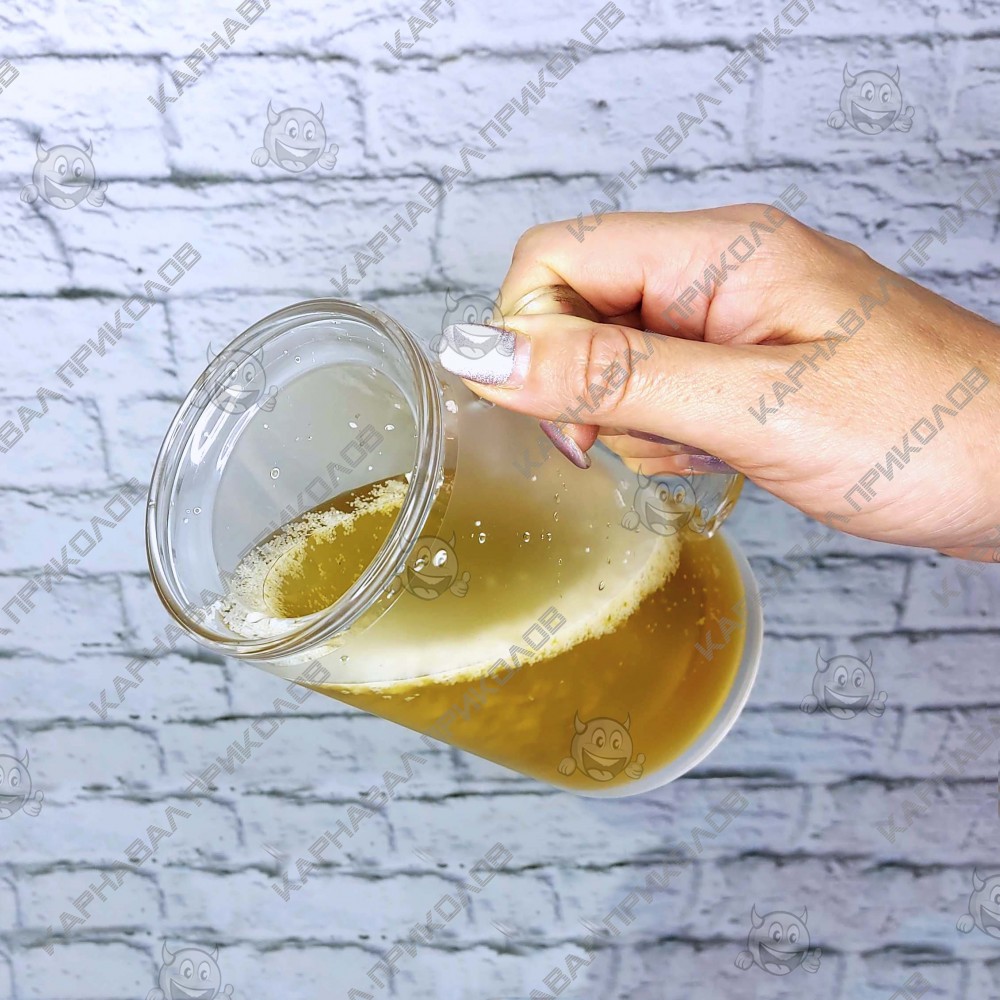 Пивний кухоль Непроливайка 350 ml HT06 - кумедний сувенір для веселої вечірки або дружнього розіграшу. Кухоль має подвійне дно і наповнений рідиною, що нагадує за кольором пиво, а білі декоративні елементи створюють витончену піну. Можна перевернути склянку вгору дном, але завдяки другому дну рідина не виллється. Склянка непроливайка може стати чудовим подарунком. Цей оригінальний товар Ви можете придбати в інтернет-магазині Карнавал Приколів. Популярні оригінальні подарунки та аксесуари для тематичних вечірок та карнавалів – фішка колекції інтернет-магазину Карнавал Приколів.