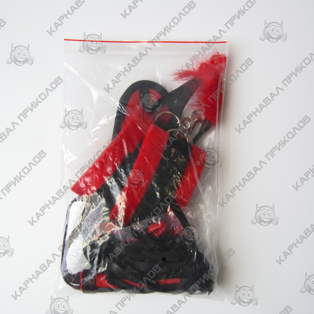 набір з 6 предметів: Плетка, маска, зажим для сосків 2шт, пір'їнка, наручники |