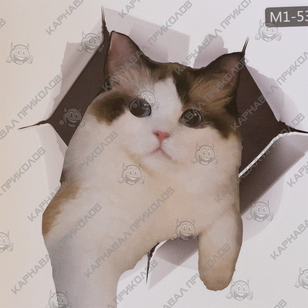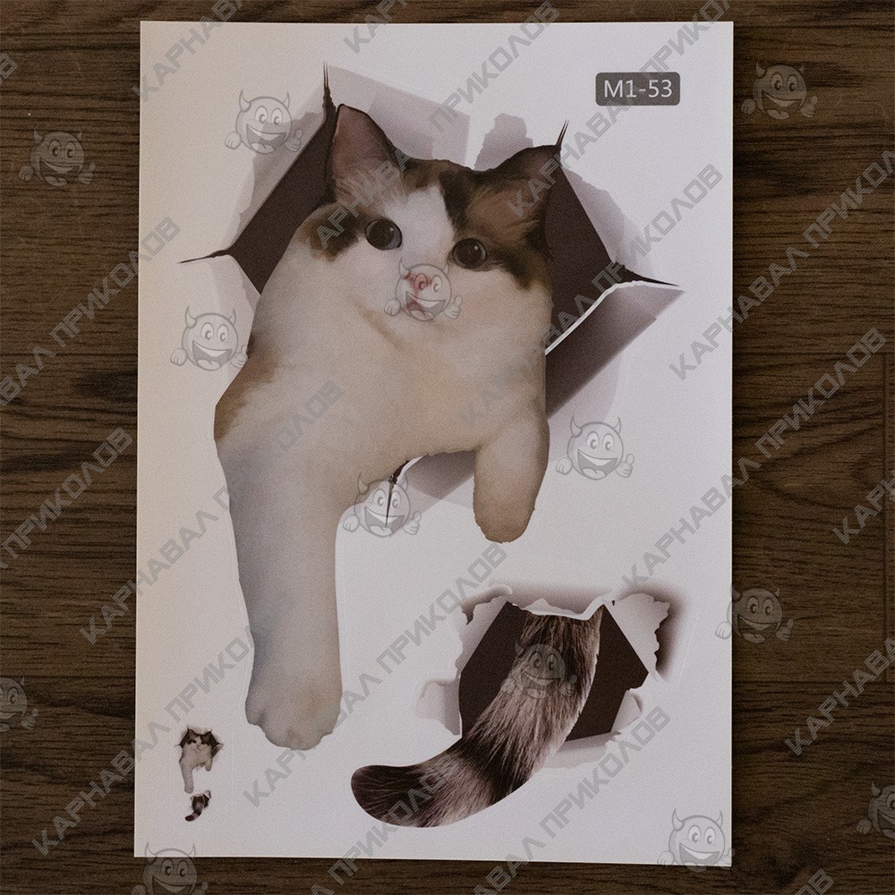 Інтер'єрна наклейка CD Кіт M1-53 30х20см – це швидкий спосіб класно прикрасити свій будинок. Інтернет-магазин Карнавал Приколів пропонує Вам купити інтер'єрні наклейки тематики тварин, які ідеально підійдуть на кухню, спальню, вітальню, дитячу або ігрову кімнату. Прикрасу на стіну оцінять діти у своїх спальнях чи ігрових кімнатах. Інтер'єрна наклейка CD Кіт M1-53 30х20см принтом кота. Розмір листа з наклейками: 20х30 см. Як 3D наклейка клеїться на стіну? Спосіб поклейки дуже простий. Для початку потрібно очистити поверхню, на яку потрібно наклеїти. Після цього знімаємо плівку і переносимо малюнок на стіну або іншу площину рукою або ганчіркою. На які поверхні можна клеїти інтер'єрну наклейку? Поклейка можлива на будь-яку ІДЕАЛЬНО ГЛАДКУ ГЛЯНЦЕВУ поверхню, наприклад: стіна пофарбована глянсовою фарбою без будь-яких рельєфів (у фарбі не повинно бути крейдяного компонента), скло, дзеркало, лаковані поверхні, гладкий пластик. На шпалери клеїти НЕ МОЖНА. Доглядати стікери на стіну також досить легко, для цього необхідно лише іноді протирати їх вологою губкою або ганчіркою. Яскравість і насиченість наклейок не змінюється з часом, крім того, вони абсолютно стійкі до вологості.