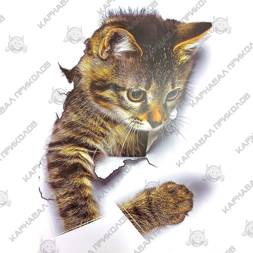 Інтер'єрна наклейка CD Котик XH2003 25х16. 5см – це швидкий спосіб класно прикрасити свій будинок. Інтернет-магазин Карнавал Приколів пропонує Вам купити інтер'єрні наклейки тематики тварин, які ідеально підійдуть на кухню, спальню, вітальню, дитячу або ігрову кімнату. Прикрасу на стіну оцінять діти у своїх спальнях або ігрових кімнатах. Розмір листа з наклейками: 16,5х25 см. Як 3D наклейка клеїться на стіну? Спосіб поклейки дуже простий. Для початку потрібно очистити поверхню, на яку потрібно наклеїти. Після цього знімаємо плівку і переносимо малюнок на стіну або іншу площину рукою або ганчіркою. На які поверхні можна клеїти інтер'єрну наклейку? Поклейка можлива на будь-яку ІДЕАЛЬНО ГЛАДКУ ГЛЯНЦЕВУ поверхню, наприклад: стіна пофарбована глянсовою фарбою без будь-яких рельєфів (у фарбі не повинно бути крейдяного компонента), скло, дзеркало, лаковані поверхні, гладкий пластик. На шпалери клеїти НЕ МОЖНА. Доглядати стікери на стіну також досить легко, для цього необхідно лише іноді протирати їх вологою губкою або ганчіркою. Яскравість і насиченість наклейок не змінюється з часом, крім того, вони абсолютно стійкі до вологості.