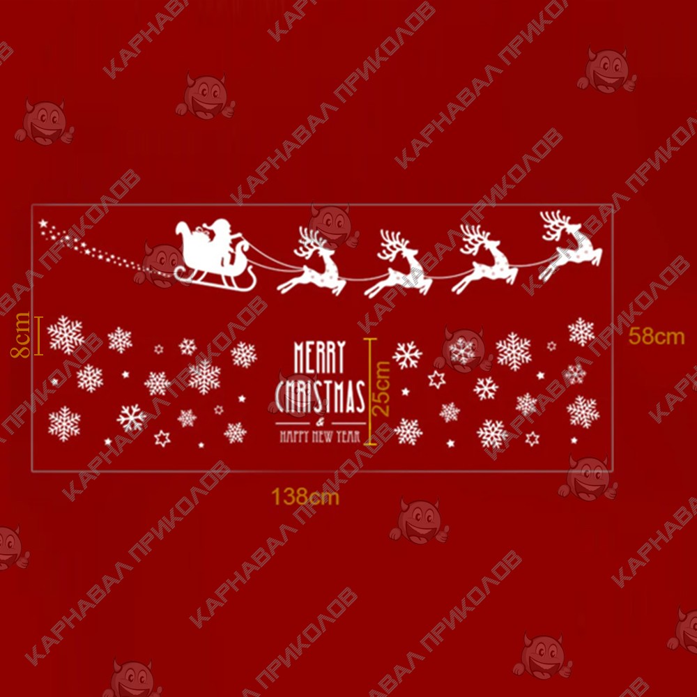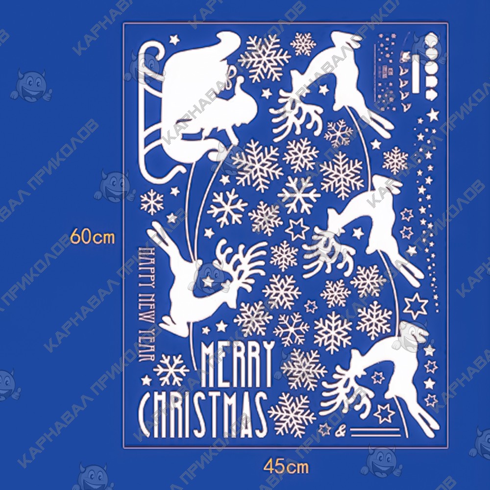 Інтер'єрна наклейка NG Новорічна упряжка з оленями SK6028 45х60см - це швидкий спосіб класно прикрасити свій будинок до свята. Інтернет - магазин Карнавал Приколів пропонує Вам купити інтер'єрні наклейки новорічної тематики, які ідеально підійдуть на кухню, спальню, вітальню, дитячу чи ігрову кімнату. Прикрасу на стіну оцінять діти у своїх спальнях чи ігрових кімнатах. Як 3D наклейка клеїться на стіну? Спосіб поклейки дуже простий. Для початку потрібно очистити поверхню, на яку потрібно наклеїти. Після цього знімаємо плівку і переносимо малюнок на стіну або іншу площину рукою або ганчіркою. На які поверхні можна клеїти інтер'єрну наклейку? Поклейка можлива на будь-яку гладку поверхню, а саме: стіна, скло, дерево, метал, пластик, кераміка. Доглядати стікери на стіну також досить легко, для цього необхідно лише іноді протирати їх вологою губкою або ганчіркою. Яскравість і насиченість наклейок не змінюється з часом, крім того, вони абсолютно стійкі до вологості.