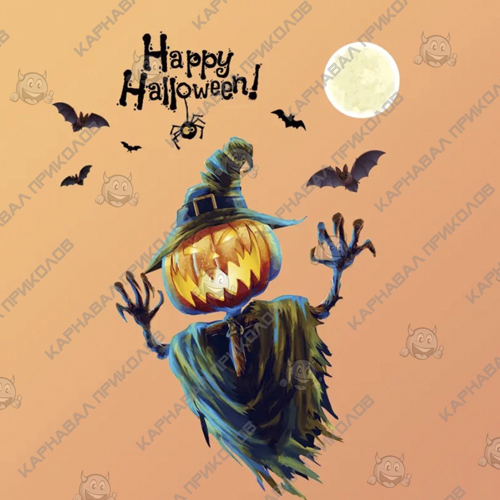 Інтер'єрна наклейка HL Гарбуз Джек XL626 45х60см – це швидкий спосіб класно прикрасити свій будинок. Інтернет - магазин Карнавал Приколів пропонує Вам купити інтер'єрні наклейки хорор тематики, які ідеально підійдуть на кухню, спальню, вітальню. Прикраса на стіну оцінять у кімнаті страху або декара Хелловін. Як 3D наклейка клеїться на стіну? Спосіб поклейки дуже простий. Для початку потрібно очистити поверхню, на яку потрібно наклеїти. Після цього знімаємо плівку і переносимо малюнок на стіну або іншу площину рукою або ганчіркою. На які поверхні можна клеїти інтер'єрну наклейку? Поклейка можлива на будь-яку ІДЕАЛЬНО ГЛАДКУ ГЛЯНЦЕВУ поверхню, наприклад: стіна пофарбована глянсовою фарбою без будь-яких рельєфів (у фарбі не повинно бути крейдяного компонента), скло, дзеркало, лаковані поверхні, гладкий пластик. На шпалери клеїти НЕ МОЖНА. Доглядати стікери на стіну також досить легко, для цього необхідно лише іноді протирати їх вологою губкою або ганчіркою. Яскравість і насиченість наклейок не змінюється з часом, крім того, вони абсолютно стійкі до вологості.