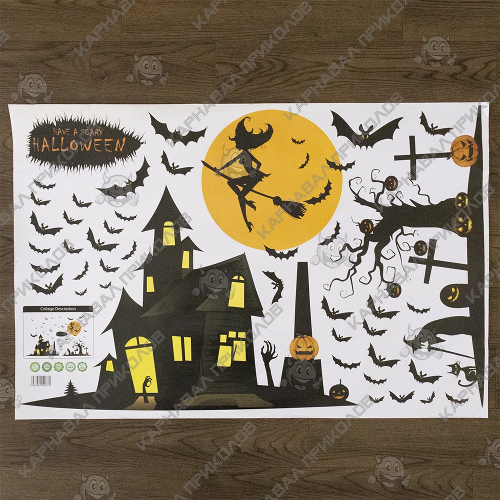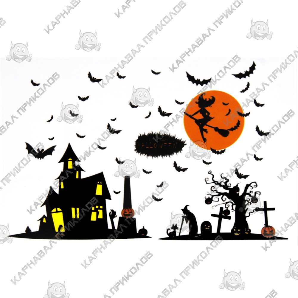 Інтер'єрна наклейка HL Шабаш XL891 60х90см– це швидкий спосіб класно прикрасити свій будинок. Інтернет - магазин Карнавал Приколів пропонує Вам купити інтер'єрні наклейки хорор тематики, які ідеально підійдуть на кухню, спальню, вітальню. Прикраса на стіну оцінять у кімнаті страху або декара Хелловін. Як 3D наклейка клеїться на стіну? Спосіб поклейки дуже простий. Для початку потрібно очистити поверхню, на яку потрібно наклеїти. Після цього знімаємо плівку і переносимо малюнок на стіну або іншу площину рукою або ганчіркою. На які поверхні можна клеїти інтер'єрну наклейку? Поклейка можлива на будь-яку ІДЕАЛЬНО ГЛАДКУ ГЛЯНЦЕВУ поверхню, наприклад: стіна пофарбована глянсовою фарбою без будь-яких рельєфів (у фарбі не повинно бути крейдяного компонента), скло, дзеркало, лаковані поверхні, гладкий пластик. На шпалери клеїти НЕ МОЖНА. Доглядати стікери на стіну також досить легко, для цього необхідно лише іноді протирати їх вологою губкою або ганчіркою. Яскравість і насиченість наклейок не змінюється з часом, крім того, вони абсолютно стійкі до вологості.