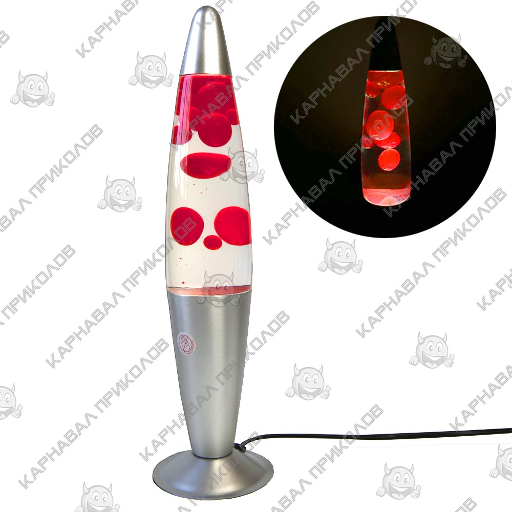 Творчим людям необхідне натхнення. І кожен знаходить його у різних речах. Якщо Ви шукаєте те, що Вас надихатиме і даватиме Вам ідеї для творчості. Інтернет-магазин Карнавал Приколів представляє дуже незвичайний аксесуар для Вашої кімнати або кабінету Лава лампа з парафіном (40см) червона. Лава лампа з парафіном червона - це дуже незвичайний нічник світильник прекрасне джерело для Вашого натхнення. Лава лампа виконана у вигляді колби, в якій знаходиться прозора олія та кольоровий парафін червоного кольору. Цю колбу треба помістити на підставку, в якій знаходиться лампочка, яка підсвічує і починає нагрівати парафін. Може хтось не знає, але в холодному стані парафін важчий за олію і тим самим він лежить на дні колби, а при нагріванні стає легше і починає плавати по колбі. Лампа представлена в різних кольорах. Така лампа зачаровує і навіть гіпнотизує, змушуючи дивитись на чудовий ефект. Так само якщо після довгого робочого дня Ви хочете розслабитися і просто посидіти в кріслі і відпочити, то Лава лампа зробить Ваш вечір набагато приємнішим, той ефект, який зробить лампа на Вас, дозволить Вам насолодитися відпочинком на повну. Світильник працює від розетки 220V. Для більшого терміну служби виробу час роботи розігрітої лампи не повинен перевищувати 8-10 годин. При нагріванні знизу 25 або 30-ватною лампочкою парафін починає розширюватися, нагрівшись він стає менш щільним ніж рідина в якій він знаходиться і це змушує його підніматися. Для розігріву парафіну знадобиться близько години, постійно тримати увімкнену лампу не можна. Рекомендований час роботи лампи не більше 3-4 годин на максимальній яскравості та нагріванні, після досягнення активного руху - інтенсивність нагрівання/яскравості слід зменшити, щоб забезпечити підтримку від пімальної температури. У комплектацію входить: скляна колба з парафіном і маслом (рідина безбарвна, а парафін кольоровий), пластикова підставка з шнуром живлення з реле (для регуляції інтенсивності нагрівання), що підключається в розетку і кришка, маленька лампа розжарювання.