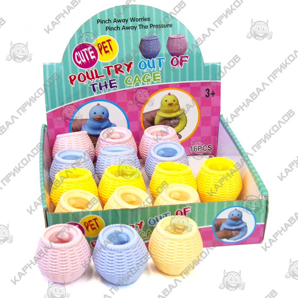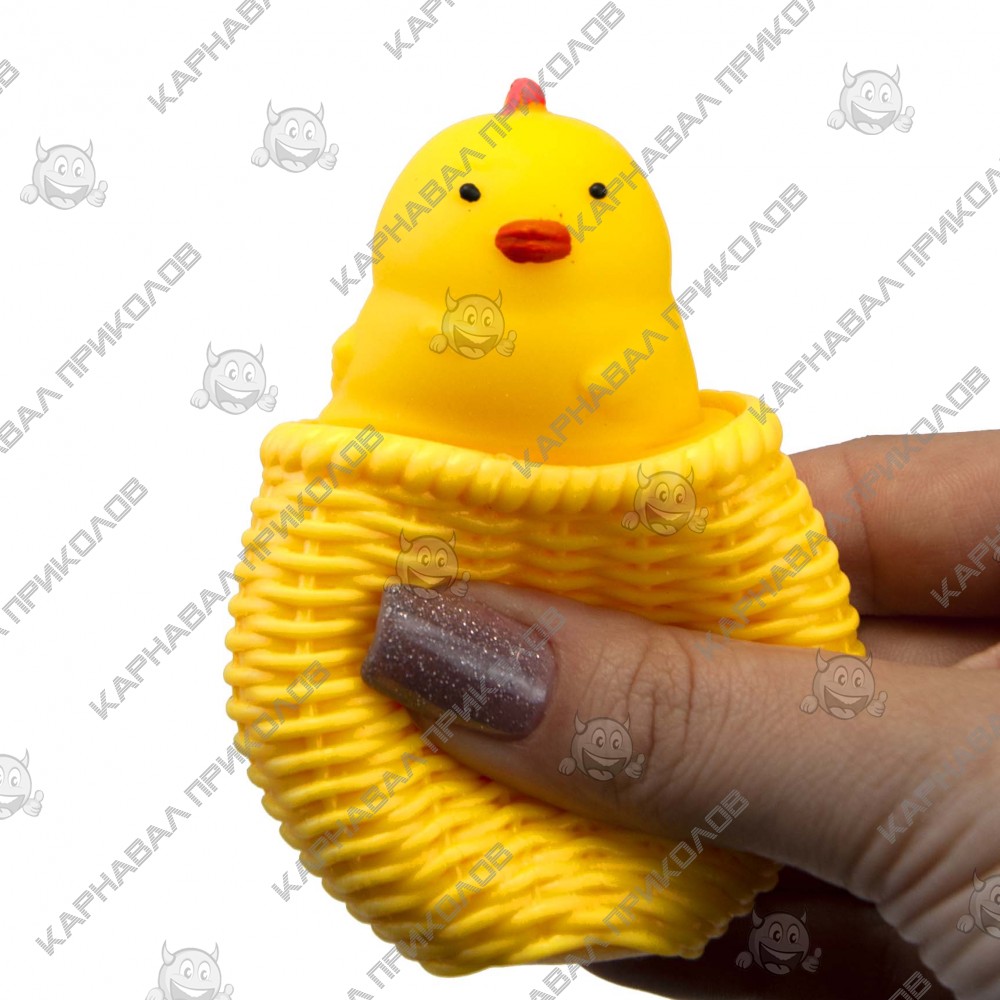 Іграшка антистрес Фуфлік Курча помаранчевый у жовтому кошику